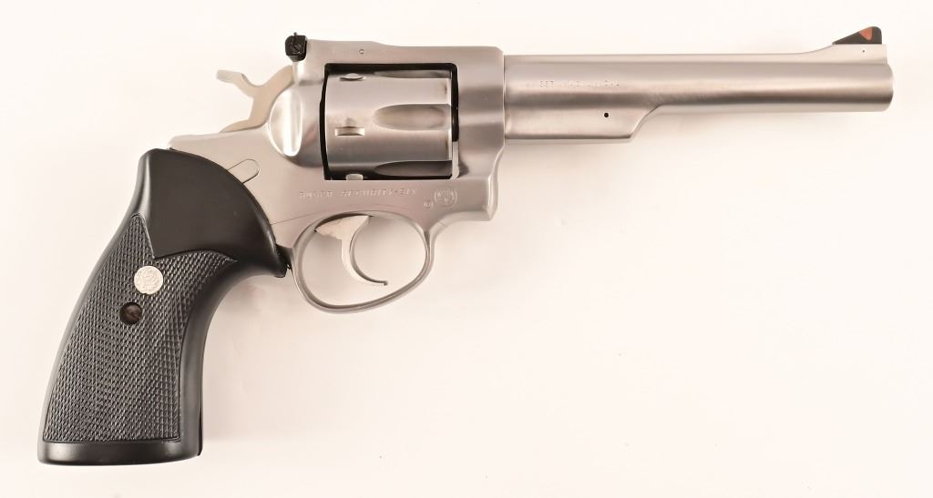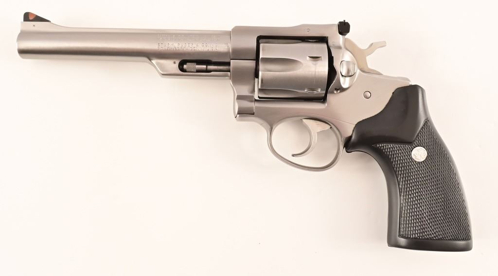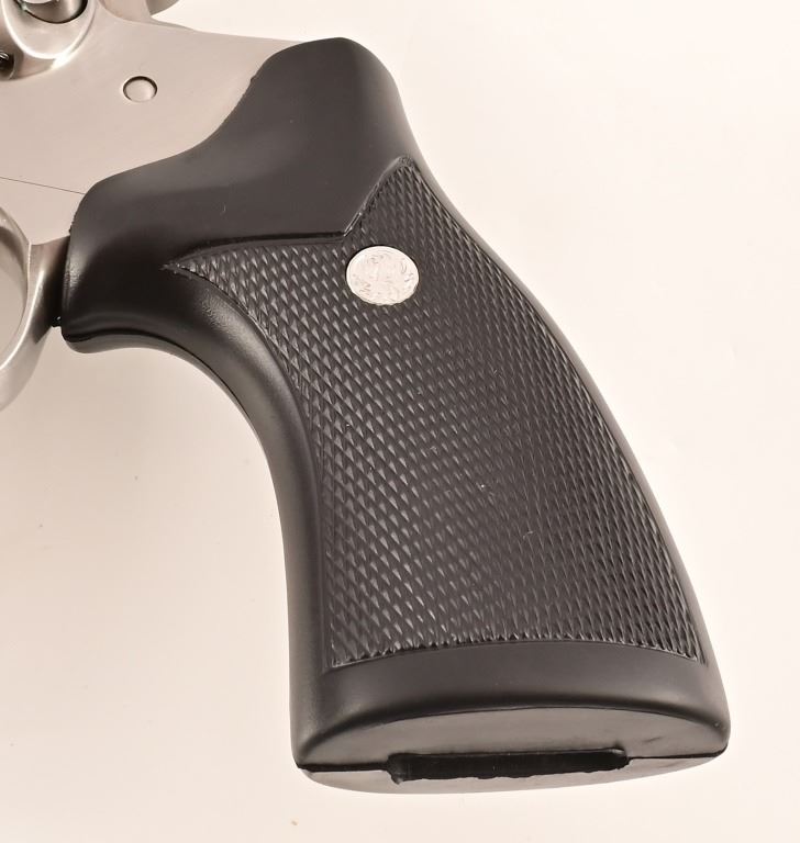 S/N 16110329. Satin stainless finish, oversized rubber target grips, 6" barrel.