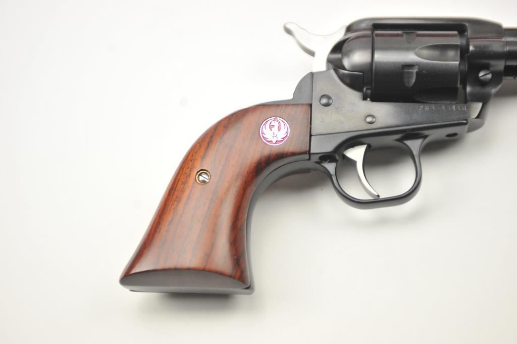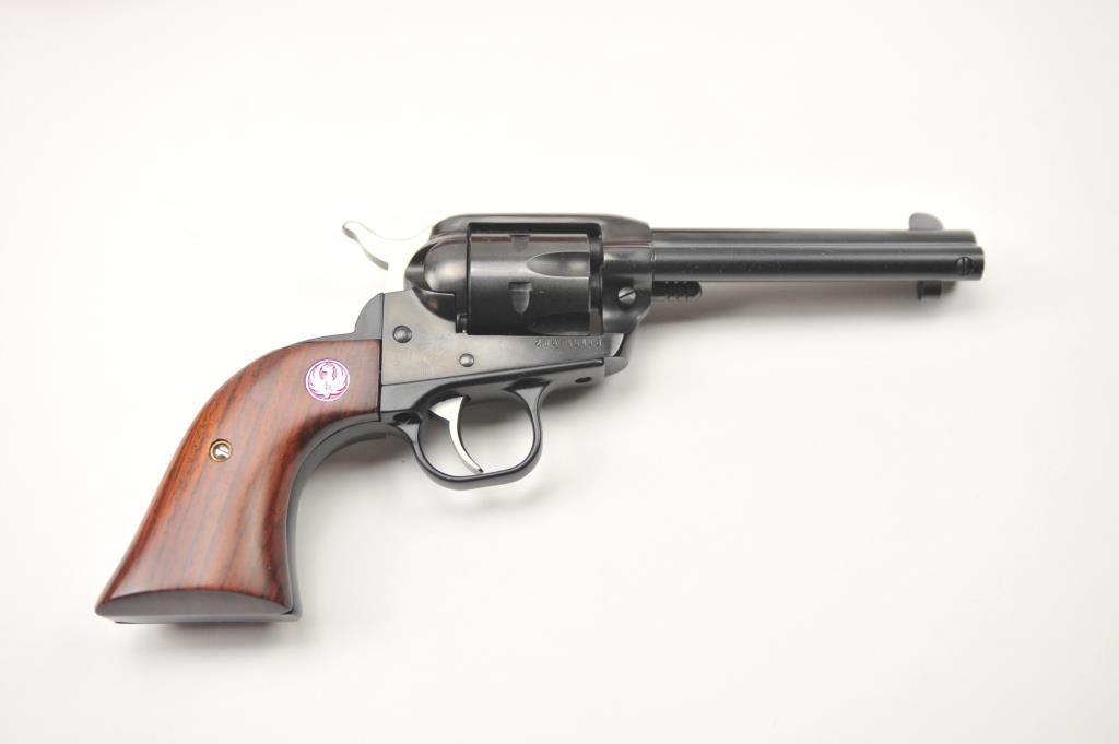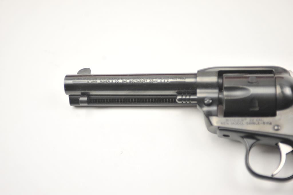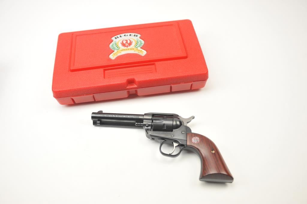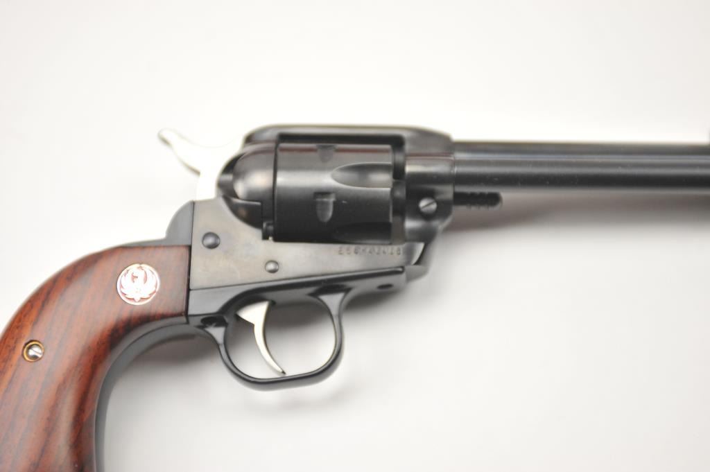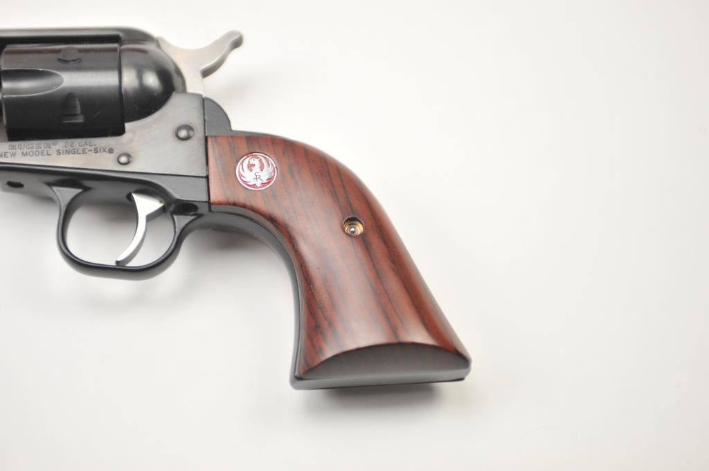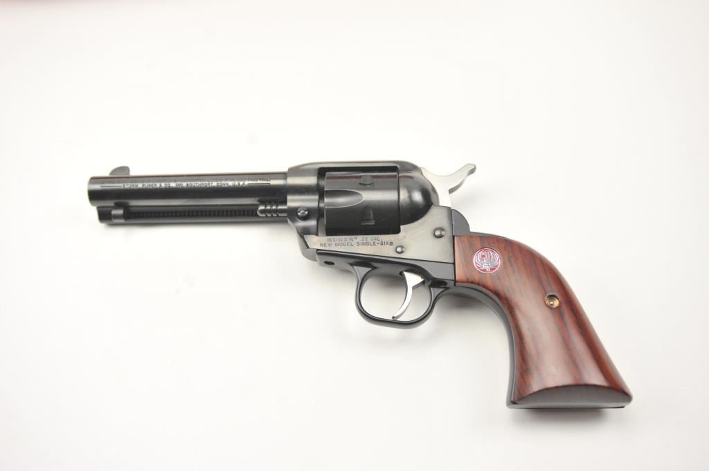 Ruger Single Six Commemorative SA revolver, .22 caliber, Serial #268-43416. The pistol is as new in the factory plastic case. The barrel is marked, “50 YEARS OF SINGLE SIX 1953 TO 2003”. The smooth wood medalliongrips are in excellent condition. The lot includes two cylinders chambered in .22 Long Rifle and one cylinder in .22 Winchester Magnum. The lot includes all associated packing materials and a trigger lock. Est.: $250-$500. (Modern/PPT).