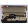 * 5-1/2" barrel. Black Plastic; Checkered grips. Blued Steel; Flat Loading Gate; Type 1 Serrated Ejector. New in box.