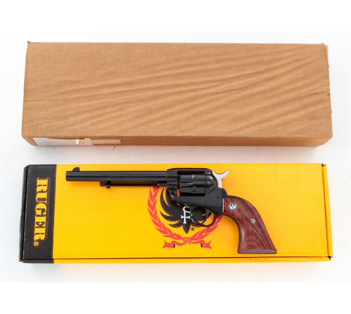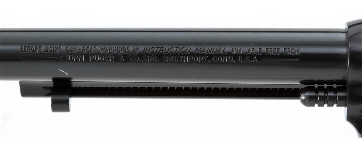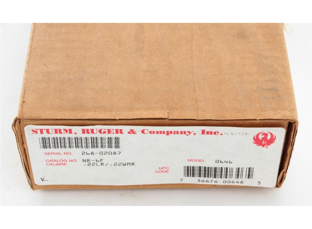 Ruger Single Six Revolver, #268-02087, .22 LR/.22 mag. cal., 6-1/2'' barrel, blue finish, factory hardwood grips. Condition is excellent, appearing as new with light index line to cylinder and one small scratch to underside of barrel. In its original box with extra cylinder and instructions. Est.: $300-$500. (Modern/PPT)