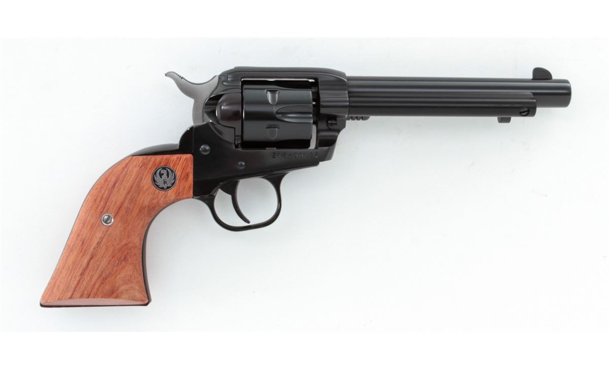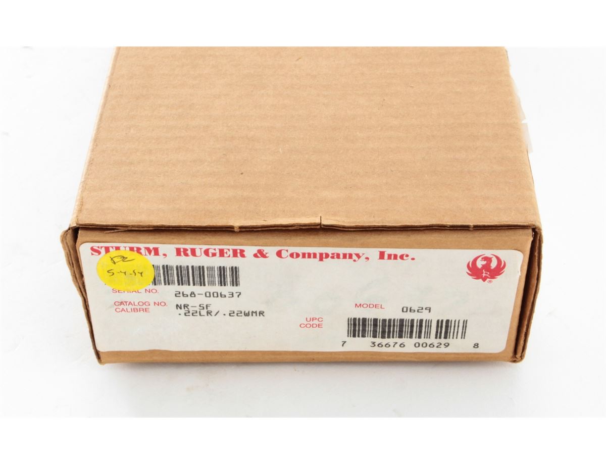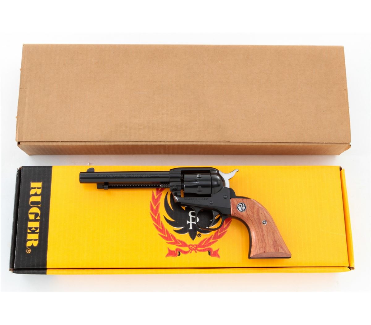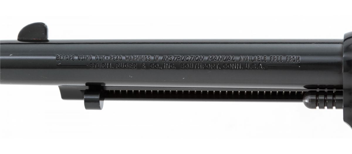 Ruger Single Six Single Action Revolver, #268-00637, .22 LR/mag. cal., 5-1/2'' barrel, blue finish, smooth grips with inlaid Ruger medallions, in original box with matching end label, original owner's manual, and both .22 and .22 Magnum cylinders. Condition is excellent with light index line to cylinder, light overall marks from handling, and some loss to the black finish on triggerguard and grip frame. Action is crisp, bore is bright. Est.: $300-$450. (Modern/PPT)