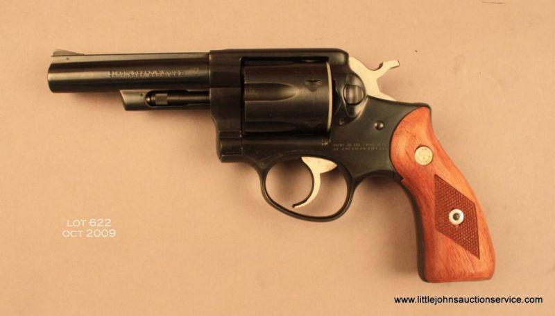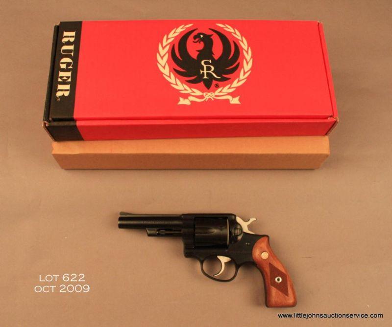 Ruger Speed Six, # 152-40350, .38 Spl., 4" barrel, blued finish, fixed sights, diamond checkered grips. Revolver is in excellent condition, in original red Ruger box with all paperwork. Manufactured in 1976, and marked "Made in the200th Year of American Liberty". Revolver has a thin layer of grease as shipped from the factory. Est. $150-$300.