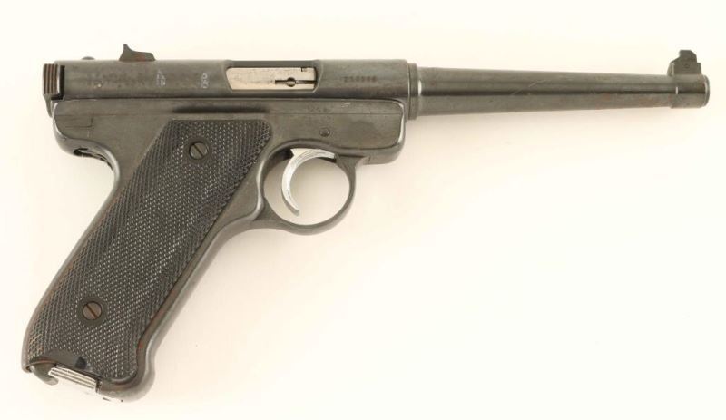 Semi-automatic pistol in 22lr, blued finish, 6"bbl, standard configuration, Condition is scatter rust and light pitting, mag is missing the screw, bolt will not retract all the way, bore is good shows rifling. NRA Fair to Poor Modern Firearm.