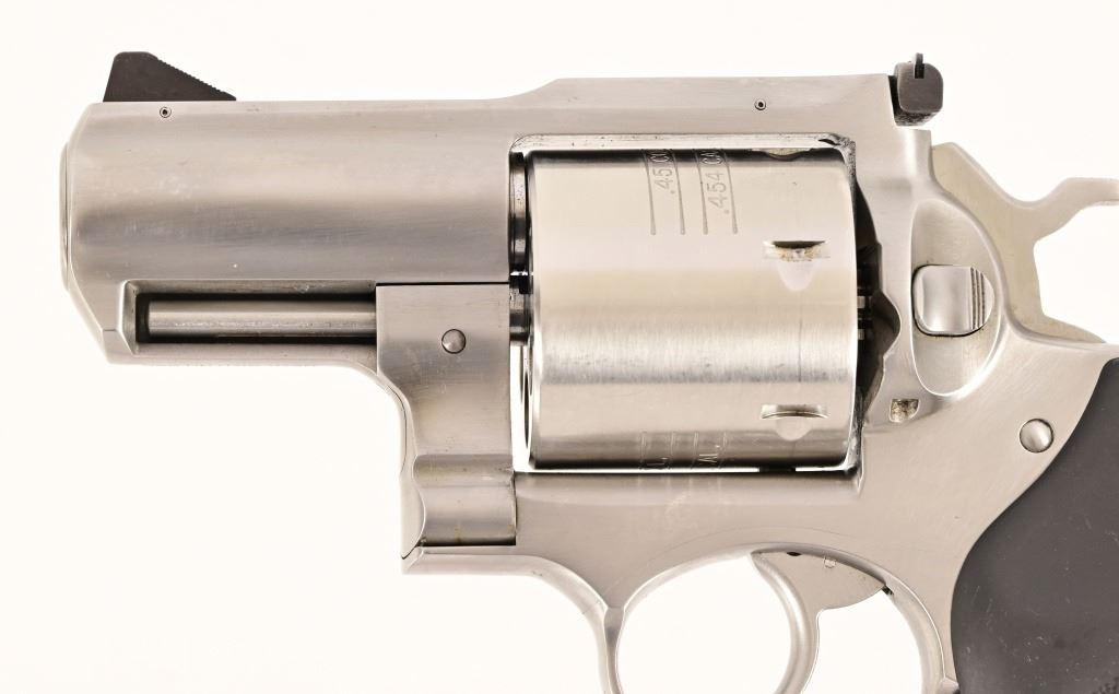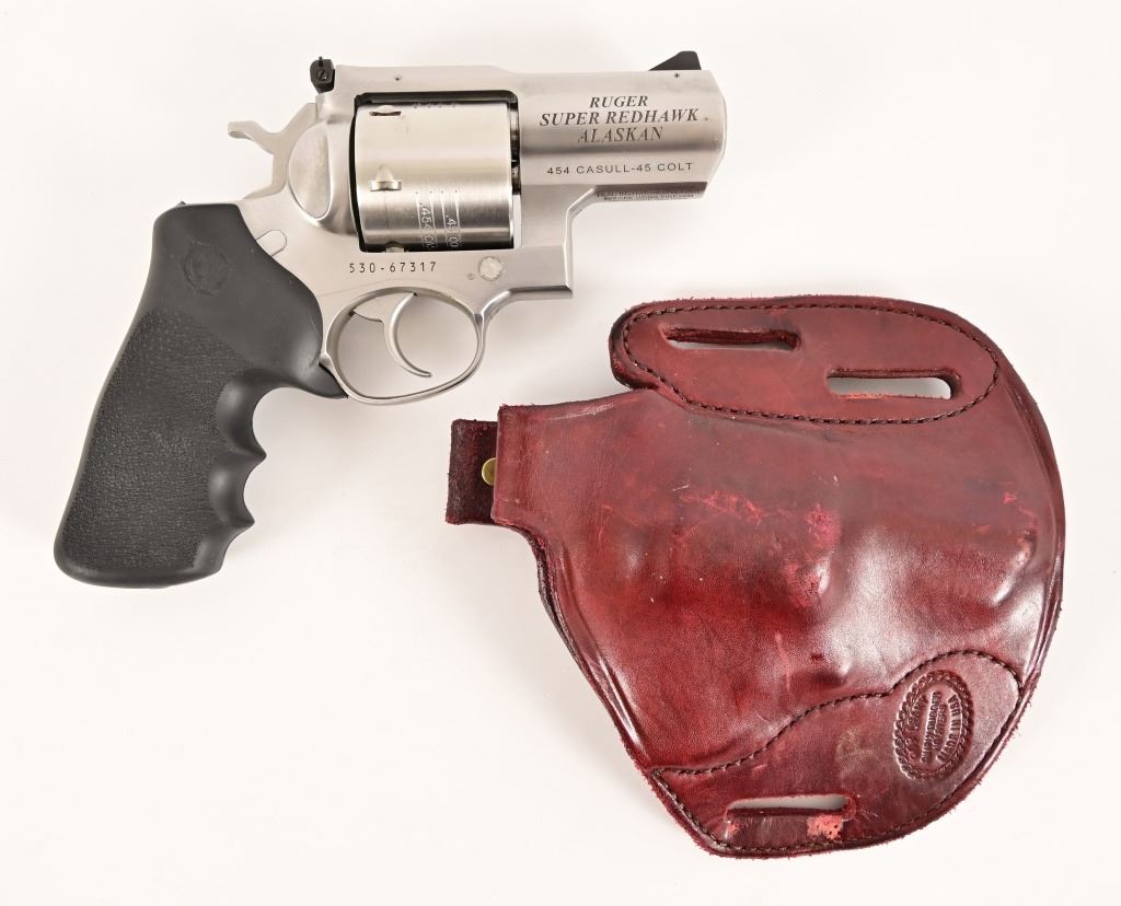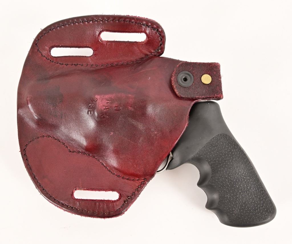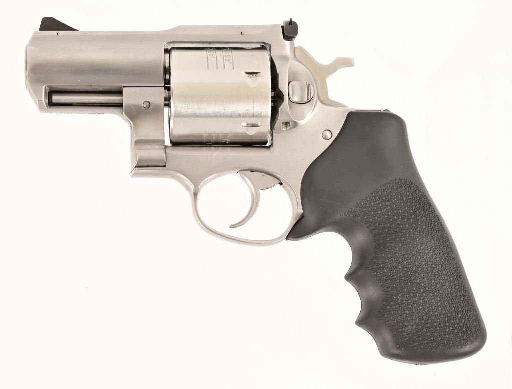 S/N 530-67317. Stainless, 2.5" barrel, good bore. Nice action. Ruger emblems on frame and on grip have been removed. Comes with Rob Leany holster. Modern.