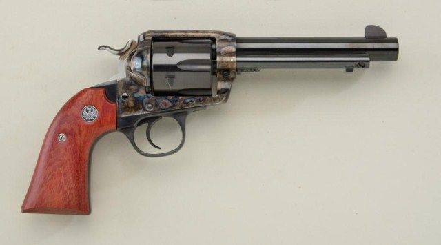 Ruger Vaquero Bisley style single action revolver, .45 cal., 5-1/2” barrel, blue and case hardened finish, smooth wood medallion grips, #57-97866. This gun is in overall fine to excellent condition showing approx. 99%original finish, fine bore, action, markings and wood grips. Est.: $400-$600.