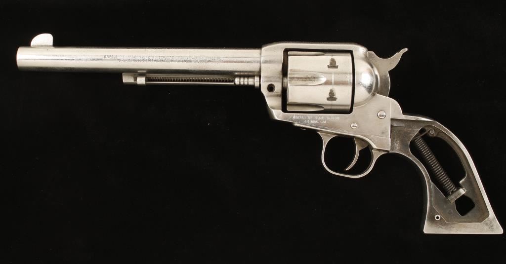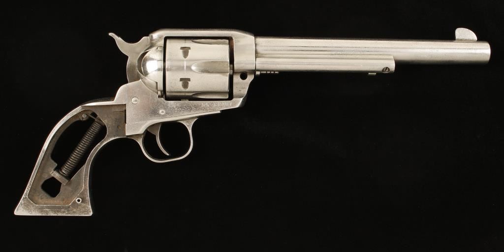 Nickel Plated Revolver, 7 1/2 " BBL, No Grips, and action does not work. Condition: Poor Heavy pitting overall, no grips, and un functioning, Parts Gun Only. Modern Firearm*
