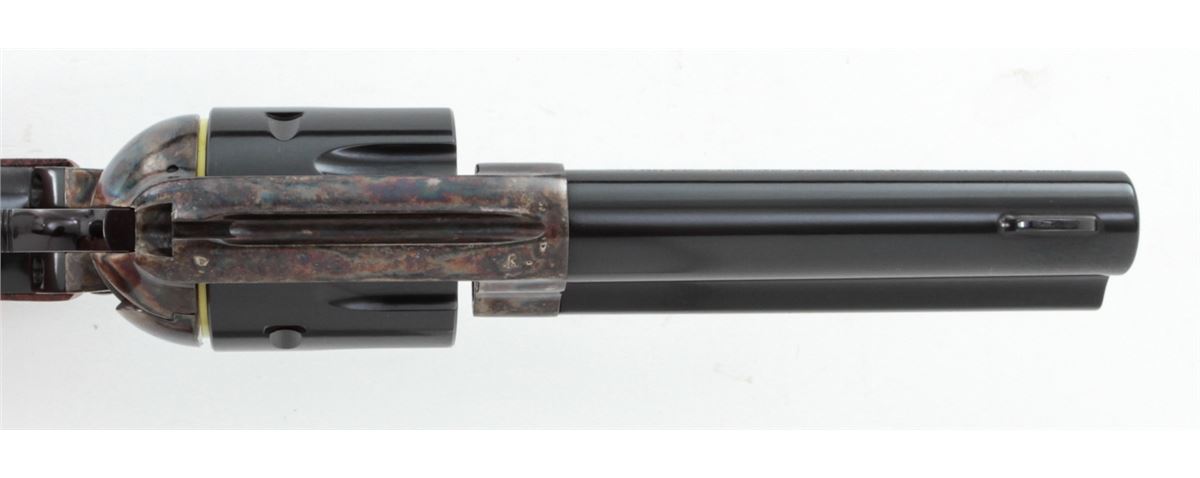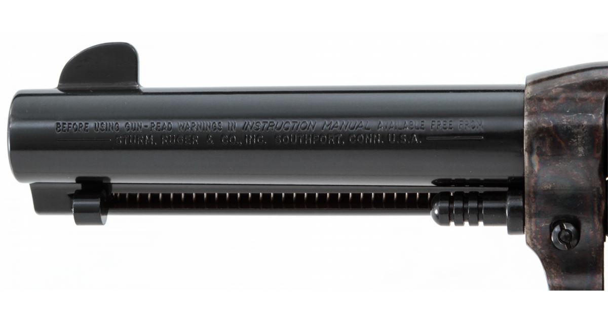 Ruger Vaquero Single Action Revolver, #55-28344, .45 cal., 4-5/8'' barrel, blue finish, case hardened frame, smooth rosewood grips with inlaid Ruger medallions, in original box with matching end label. Condition is excellent, appearing near new, with light index line to the cylinder and light overall marks from handling. Action is crisp, bore is bright. Est.: $450-$600. (Modern/PPT)