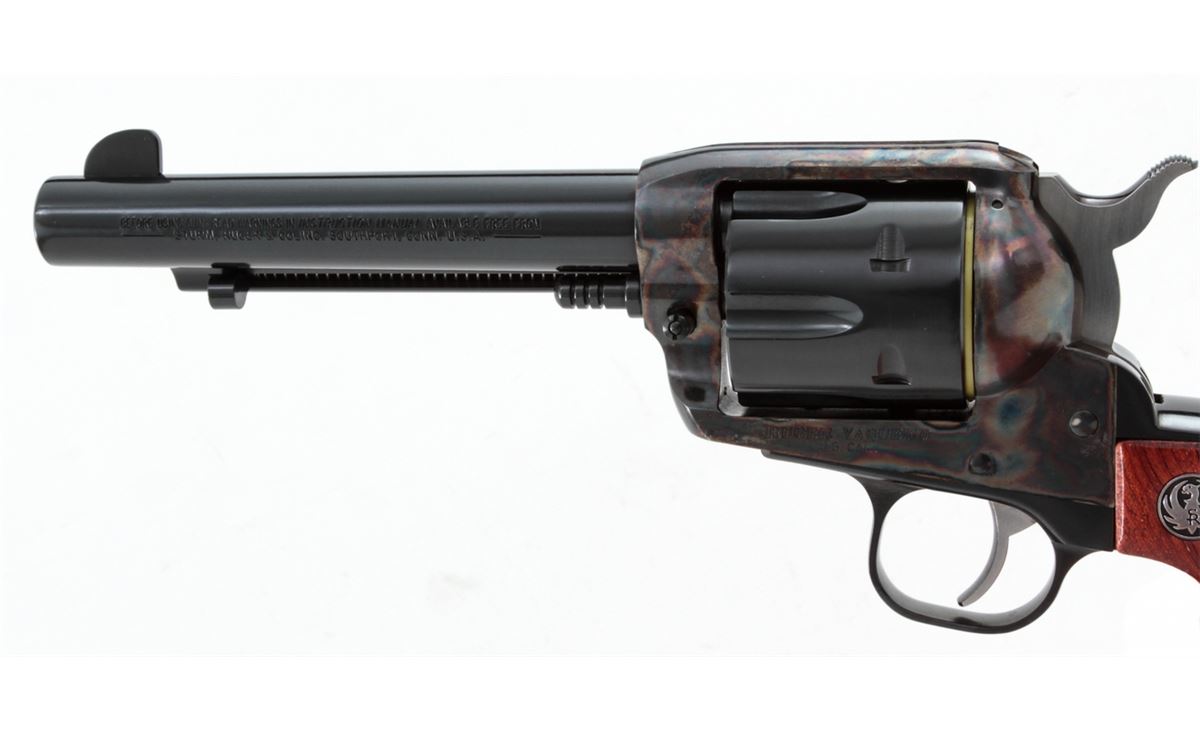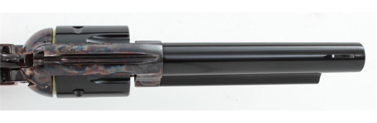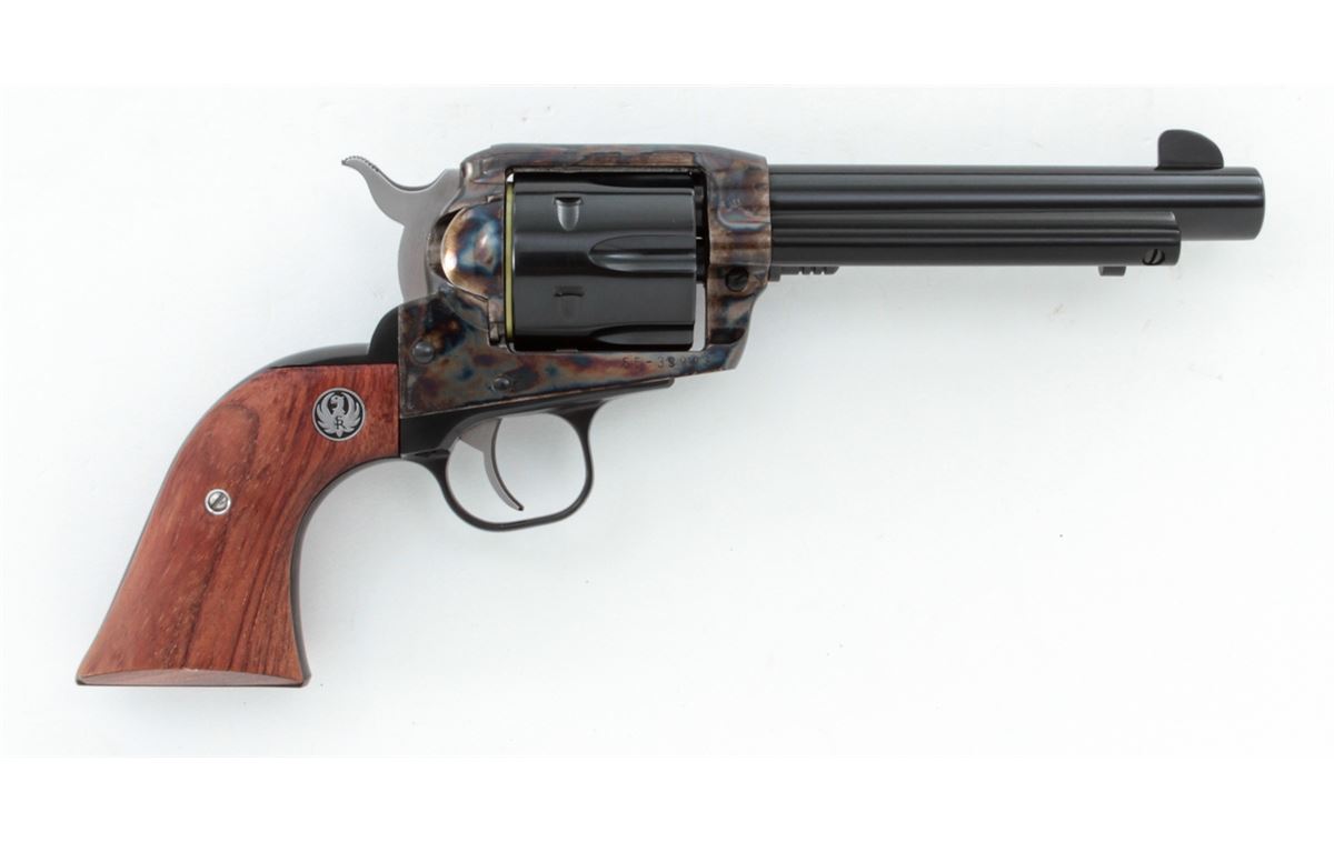 Ruger Vaquero Single Action Revolver, #55-39943, .45 cal., 5-1/2'' barrel, blue finish, case hardened frame, smooth rosewood grips with inlaid Ruger medallions, in original box (with no end label). Condition is excellent, appearing near new, with light index line to cylinder and light overall marks from handling mainly to grips and backstrap. Action is crisp, bore is bright. Est.: $450-$600. (Modern/PPT)
