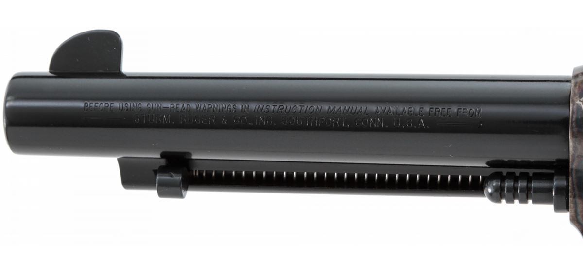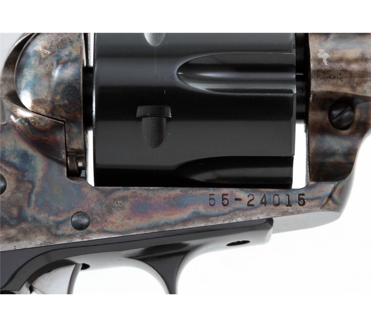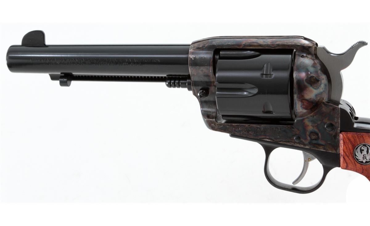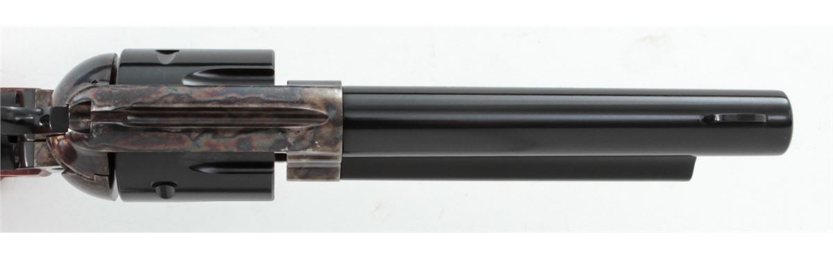 Ruger Vaquero Single Action Revolver, #55-24015, .44 mag. cal., 5-1/2'' barrel, blue finish, case hardened frame, smooth rosewood grips with inlaid Ruger medallions, in original box with matching end label. Condition is excellent with index line, light overall marks from handling, and several small losses to the case hardened finish near barrel. Action is crisp, bore is bright. Est.: $400-$550. (Modern/PPT)
