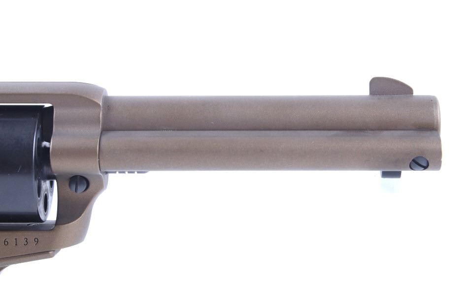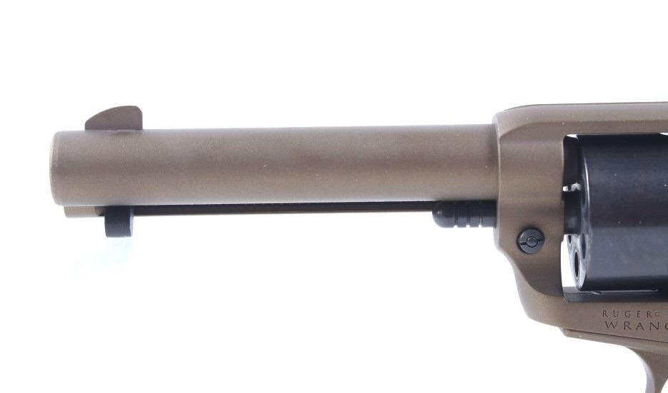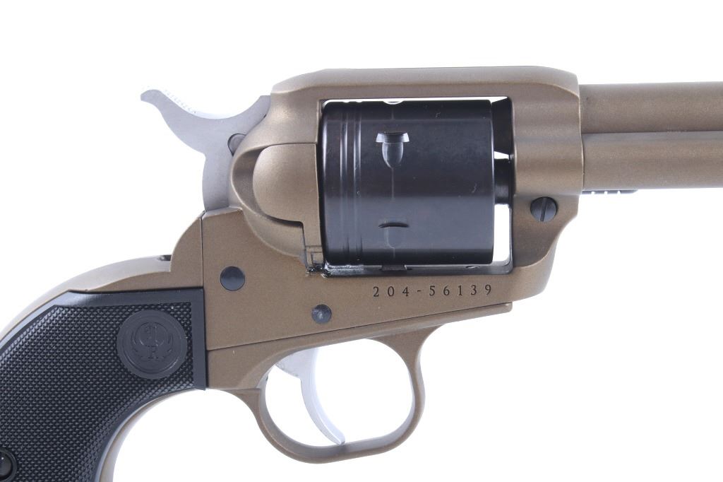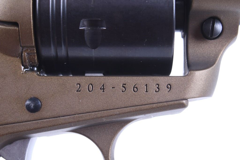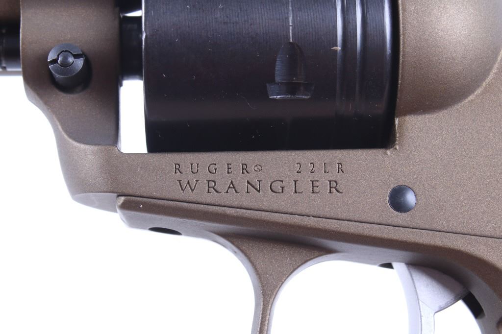 Featured in this lot is a Ruger Wrangler single action revolver chambered in .22 long rifle. The revolver is chambered in .22LR and features a bronze powder coat finish, six shot cylinder, and checkered rubber grips. The left side of the frame is marked "Ruger 22LR Wrangler" with the bottom of the barrel marked "Read Instruction Manual Before Using Firearm - Ruger, Newport, NH U.S.A.". The right side of the frame is marked with the serial number "204-56139". The revolver comes with its original factory box. Overall, the revolver shows very good, like-new, in box condition. Serial Number: 204-56139. This is a modern firearm and requires a FFL transfer or NICS background check.*