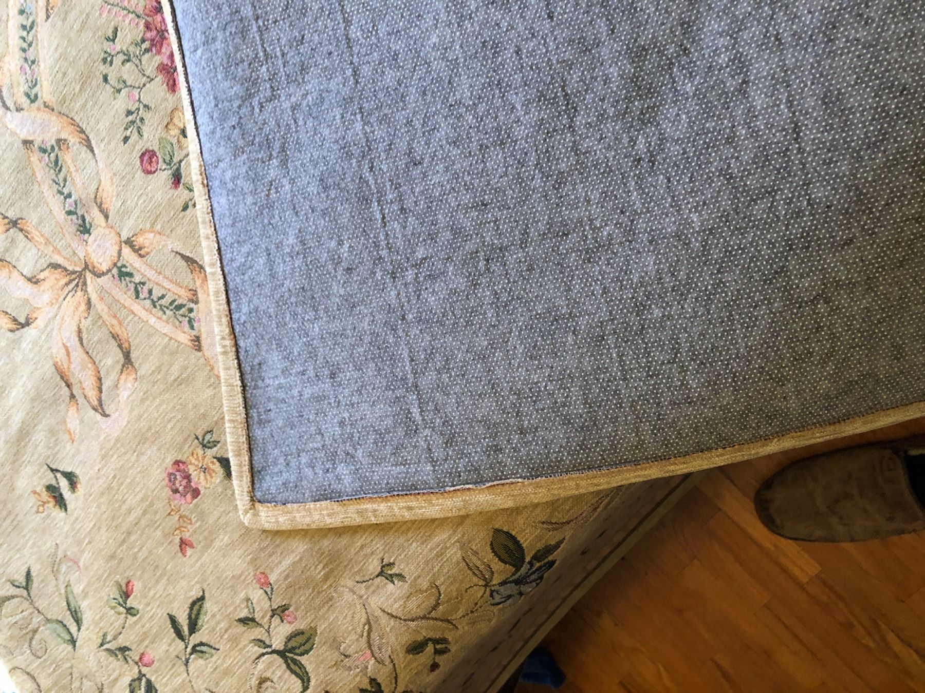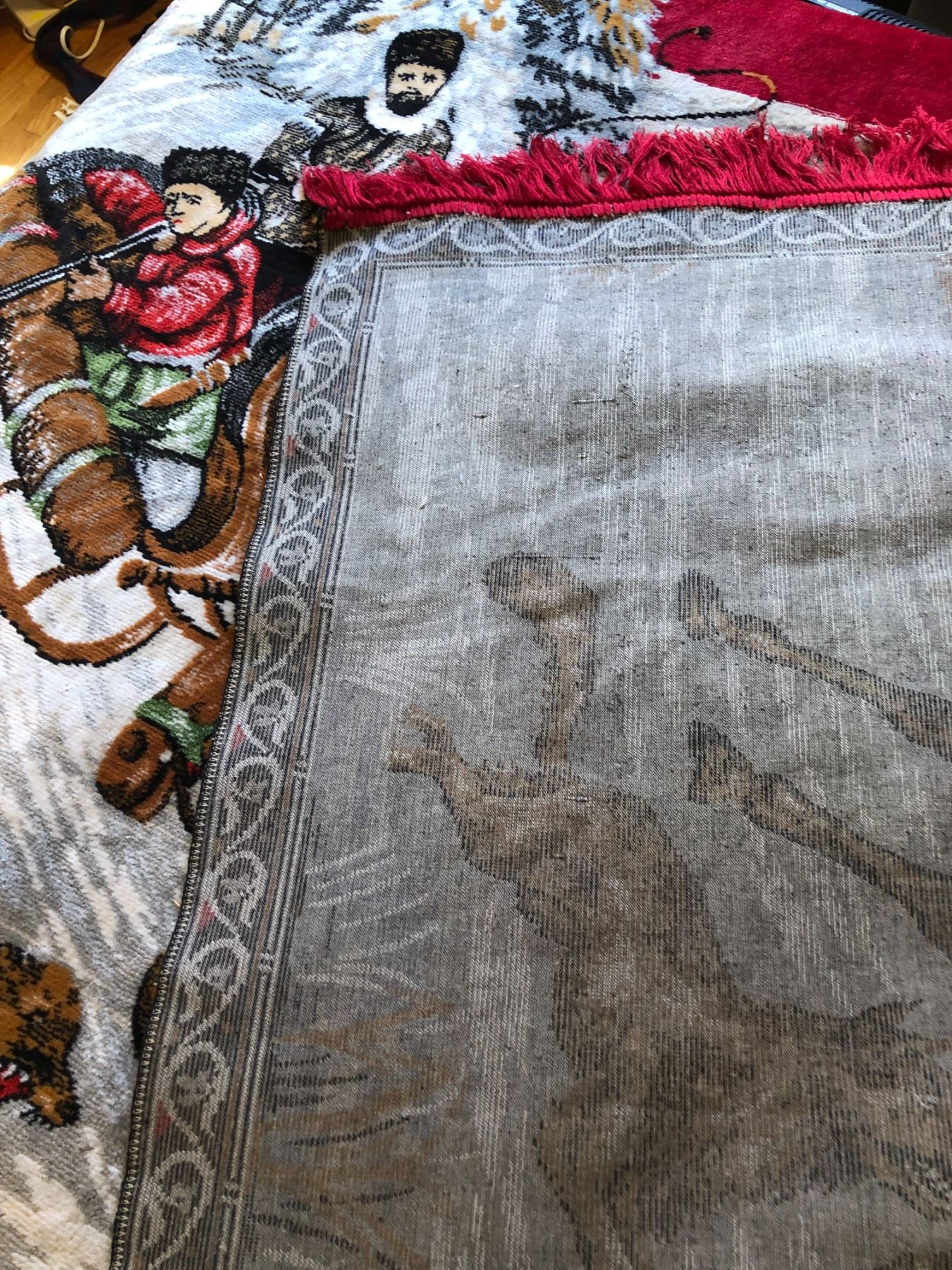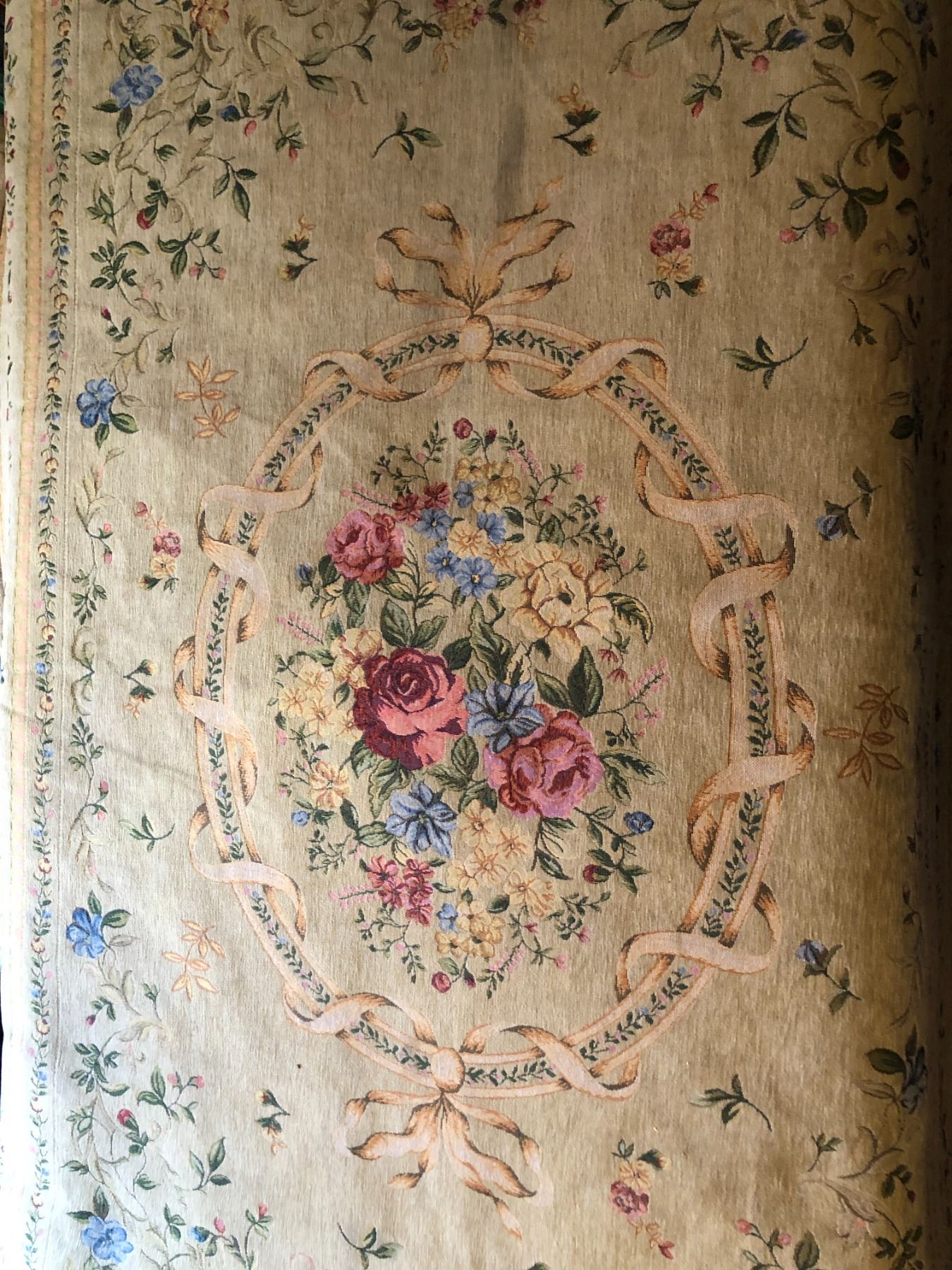Rug with Red Tassles 5 ft 8 in long x 3 ft 11 in wide. Gray Floral 6 ft 8 in long x 4 ft 10 in wide