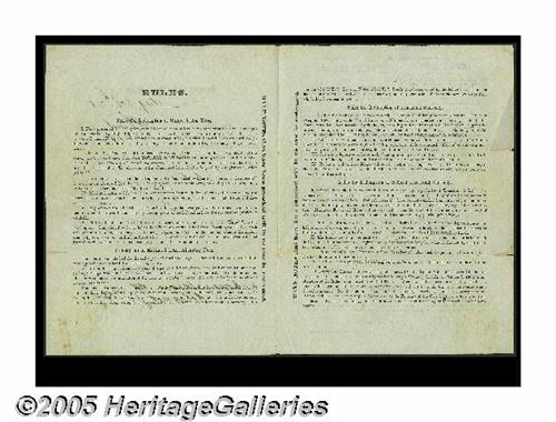 <B>Rules for the Redemption of Currency.</B></I> A single sheet folded to make four pages that bear the printed signatures of Spinner and Hugh McCulloch. The Rules for the Redemption of Intact and Defaced Fractional Currency are particularly interesting. This set has two burned branded counterfeit notes attached to it with what is clearly a contemporary pin.