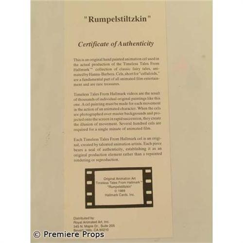 Rumpelstiltzkin Animation Cels Includes 1 cells and 1 hand drawn sketches /Filmation Studios / (matted ~ 30 1/2" x 15") with Certificate of Authenticity (FLM3044)