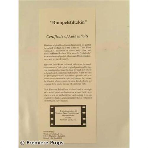 Timeless Tales from Hallmark - Rumpelstiltzkin - Animation Cels - This lot includes 1 cel and 1 hand drawn sketch. This item from Filmation Studios is matted measures approximately 30" x 15". Includes an original Certificate of Authenticity. This item is oversized and will require additional shipping charges. Please e-mail for shipping rates before bidding. Make these classic collectibles part of your memorabilia collection today! (FLM3040)