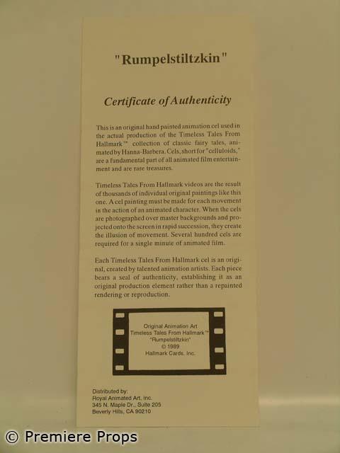 Timeless tales from Hallmark, Rumpelstilzkin, Animation Cels Includes 1 cells and 1 hand drawn sketches /Filmation Studios / (matted ~ 17" x 27") with Certificate of Authenticity. This item is oversized and requires additional shipping charges. Please email for a shipping quote prior to bidding. (FLM3022)