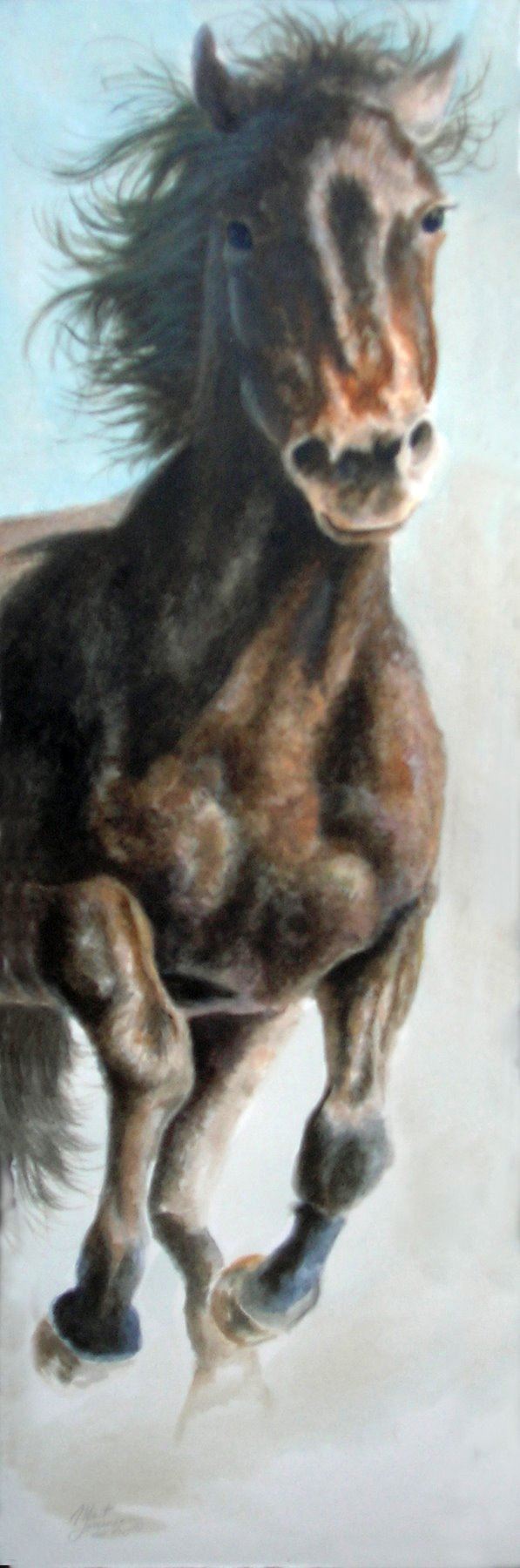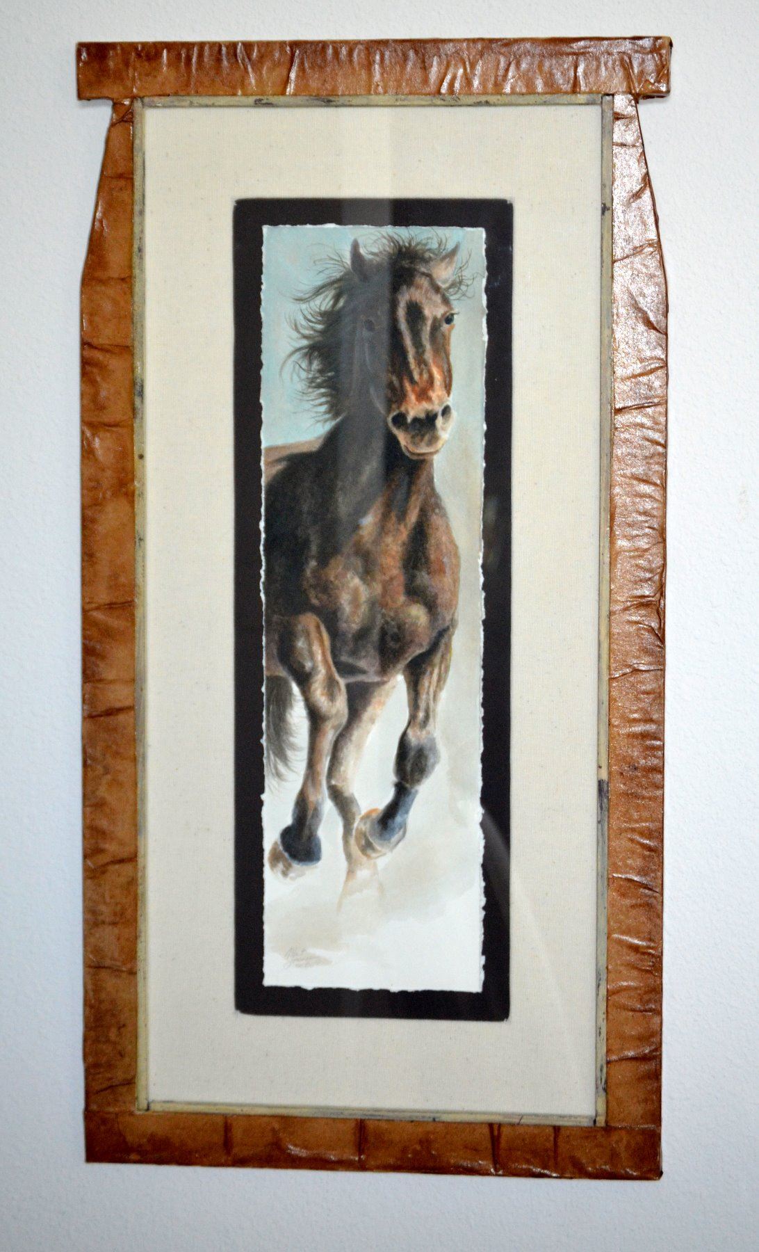 Artist: Albert Joransen. Title: Run Pony Run. Artwork size: 6" x 21". Frame: 16" x 31". Medium: Acrylic. Artist's description: Watching a running horse and focusing on its movement. I painted Run Pony Run to capture the exhilaration of that moment.