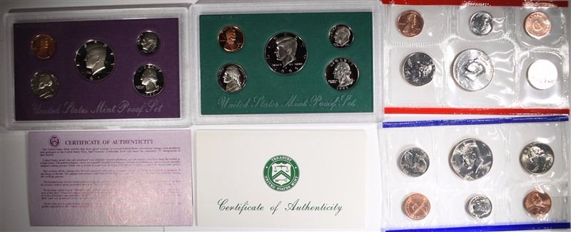 Run of 1990-1999 Mint & Proof Sets - 1 of Each for Every Year ESTIMATE $115 - $130.