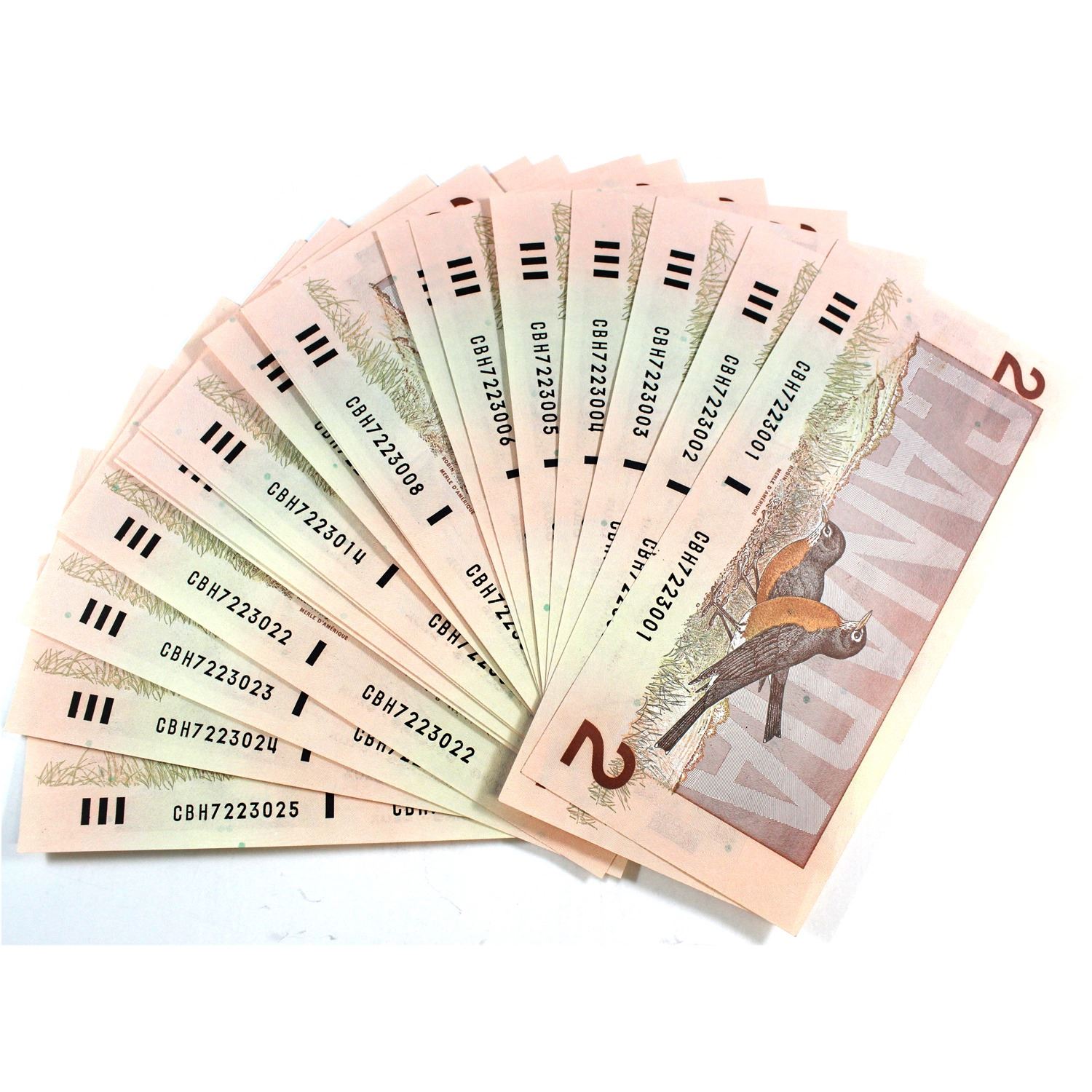 Run of 25x 1986 $2 Bird Series Notes in Sequence S/N CBH7223001-025. 25pcs