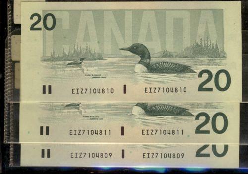 Run of 3 consecutive 1991 $20 notes. BC-58ai EIZ. All Choice uncirculated.