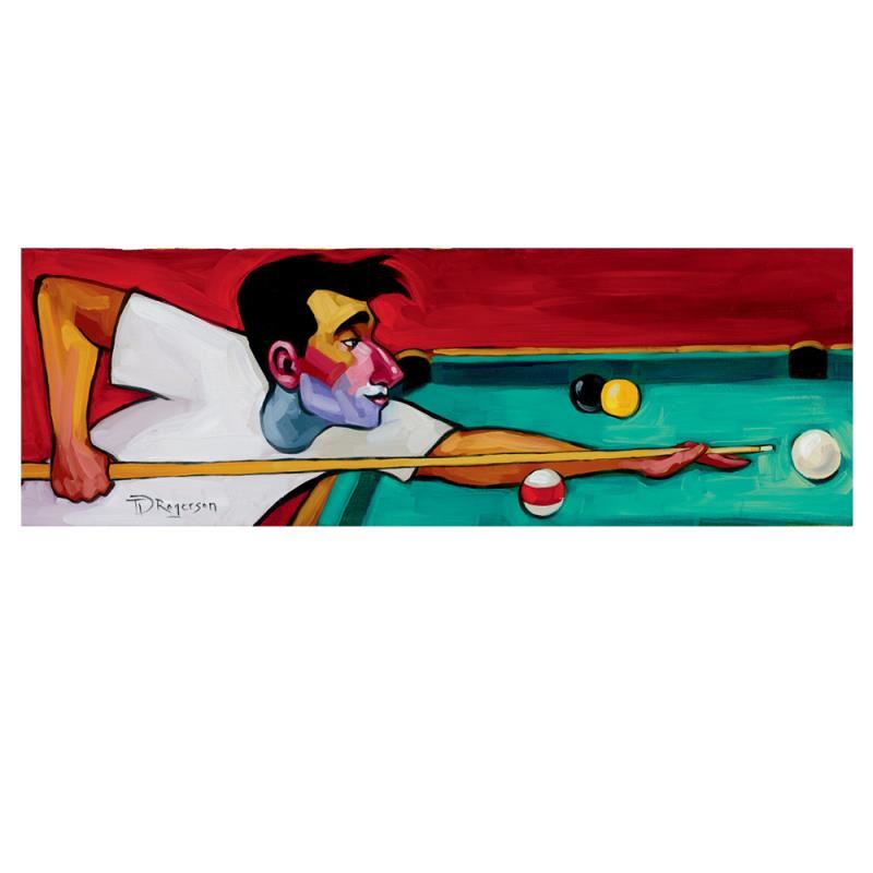 "Runnin' the Table" is a limited edition giclee on hand-embellished canvas, numbered and hand signed by Tim Rogerson. This piece comes with a 2" border and may be framed or gallery wrapped based on preference. Includes Certificate of Authenticity! Measures approx. 30" x 10" (image).