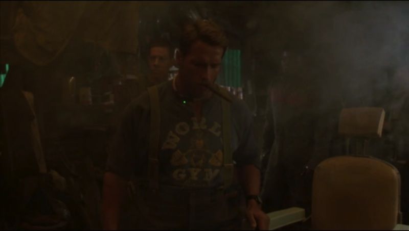(TriStar Pictures, 1987) This sweatshirt was acquired by the production for use by Arnold Schwarzenegger as "Ben Richards". The sweatshirt features the World Gym, Venice, California graphics on both the front and back and has been distressed for filming.