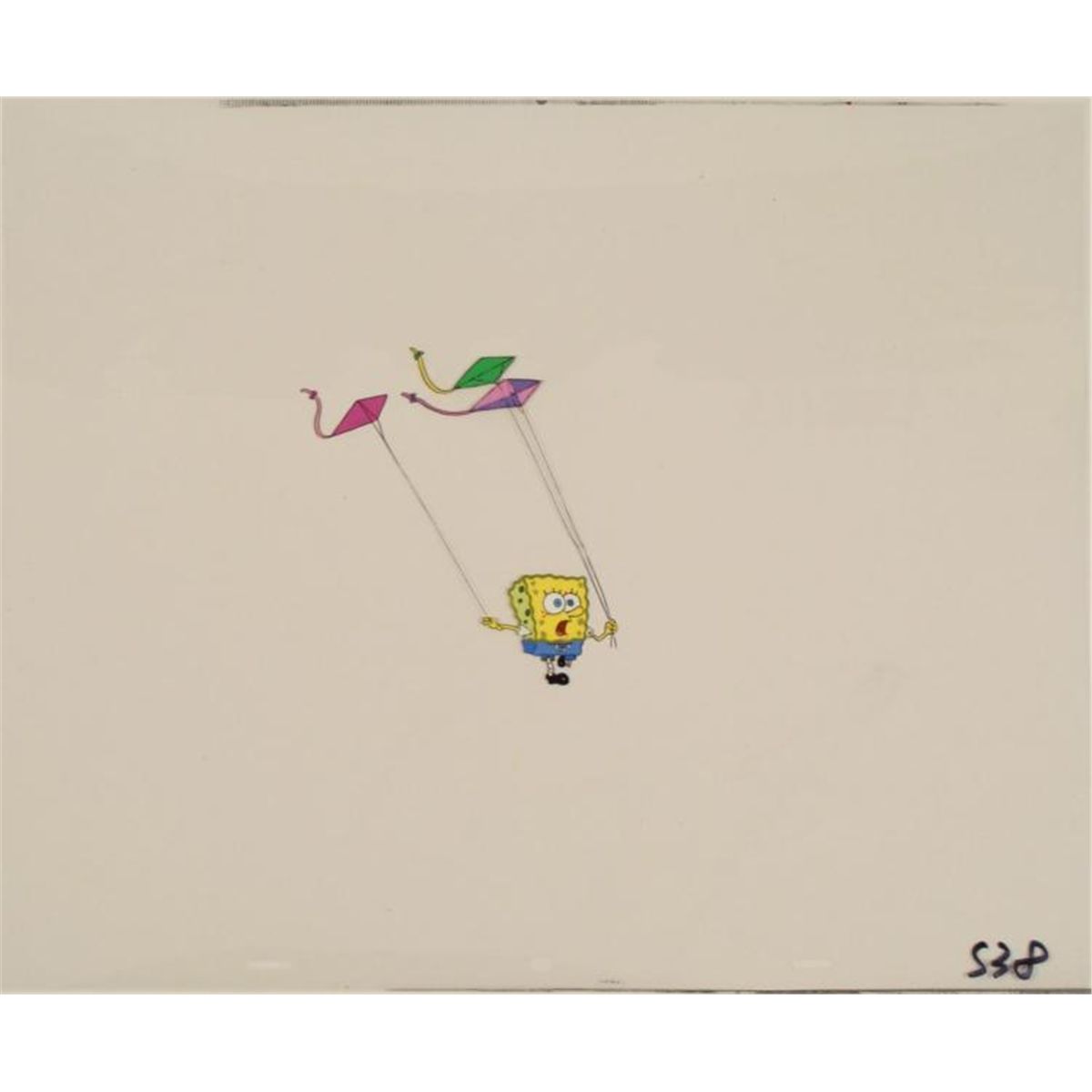 This original animation cel is from the Nickelodeon TV show SpongeBob Squarepants. The story takes place under the deep blue sea in Bikini Bottom, where SpongeBob resides. SpongeBob, who is a yellow, porous sponge, is your typical happy-go-lucky character, as he is always cheerful and enjoys making people laugh. Patrick Star, SpongeBob's neighbor who is a starfish, is your average children's show idiot, as he boasts knowing nothing and is often getting himself into ridiculous situations. Between the homes of these two lies the home of the miserable Squidward, a squid, who is known for being grouchy and playing tricks on SpongeBob and Patrick. Both SpongeBob and Squidward work at the Krusty Krab, a fast food business run by the greedy money-loving Mr. Krabs, a crab, the arch rival of the evil, possibly misunderstood, Plankton. Another neighbor, Sandy Cheeks, an athletic squirrel who normally wears an astronaut's space suit, was introduced in "Tea at the Treedome." She spends most of her time inventing and experimenting. * SpongeBob is running * Original Production Animated Cel Overall Size of Cel: 13 1/2" x 16 1/2" Very Good ConditionThis is an original hand-painted cel set-up used in the production of an episode of "SpongeBob SquarePants." Each one-of-a-kind set-up represents a slight change in position of the characters. When individually photographed and projected in rapid succession, the images appear to move. * To create production cels, the original animator's drawing is transferred onto an acetate cel (by hand-inking and/or photo copying). The cel is then hand-painted on the reverse side. * The cel is ready to be matted and framed. The animator's notations are at the bottom of the cel. *