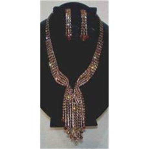 <tr><td>Title:Runway Bronze Austrian Crystal Necklace ER Set</td></tr>