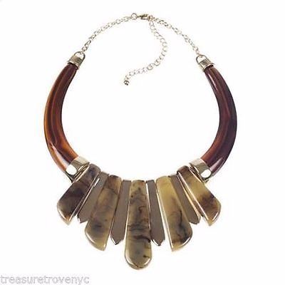 Luxurious plastic bib, that make you look like a soap opera actress. Necklace has 5” wide back opening with 8” long chain. Bib is 4” wide and 2” long. Closes with lobster clasp and jump ring, adjustable.