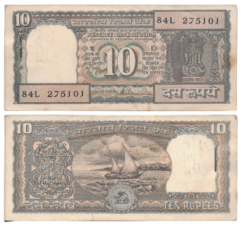 Rupees 10 bundle, signed S. Venkitaramanan, prefix L (J&R 6.4.10.2B). Uncirculated. (100)