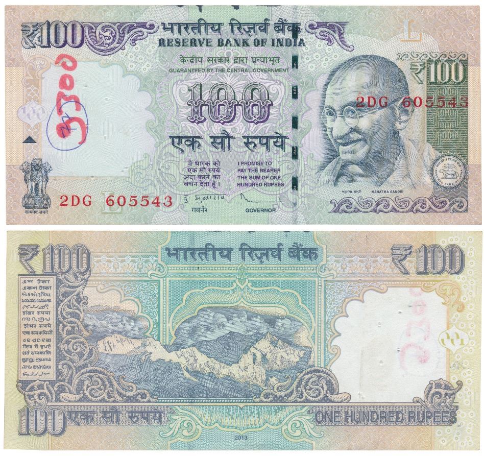 Rupees 100, 2013, signed D. Subbarao, Error, serial number from the top right corner shifted in the middle. Extremely Fine.