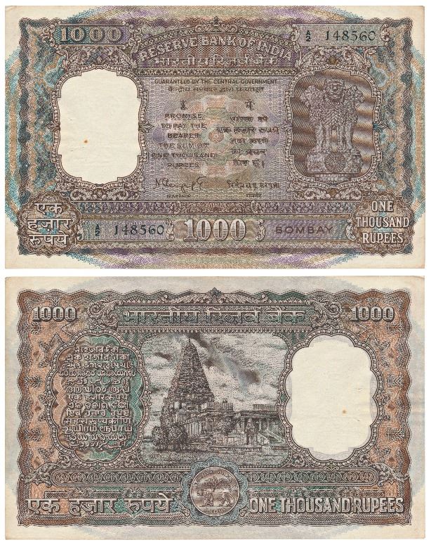 Rupees 1000, 1975, signed N. C. Sengupta, Bombay