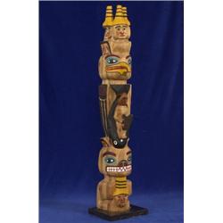 Rupert Jeffrey Totem Thunderbird with Watchman, Man Riding Killer Whale and Grizzly Bear 29" H. Good Condition