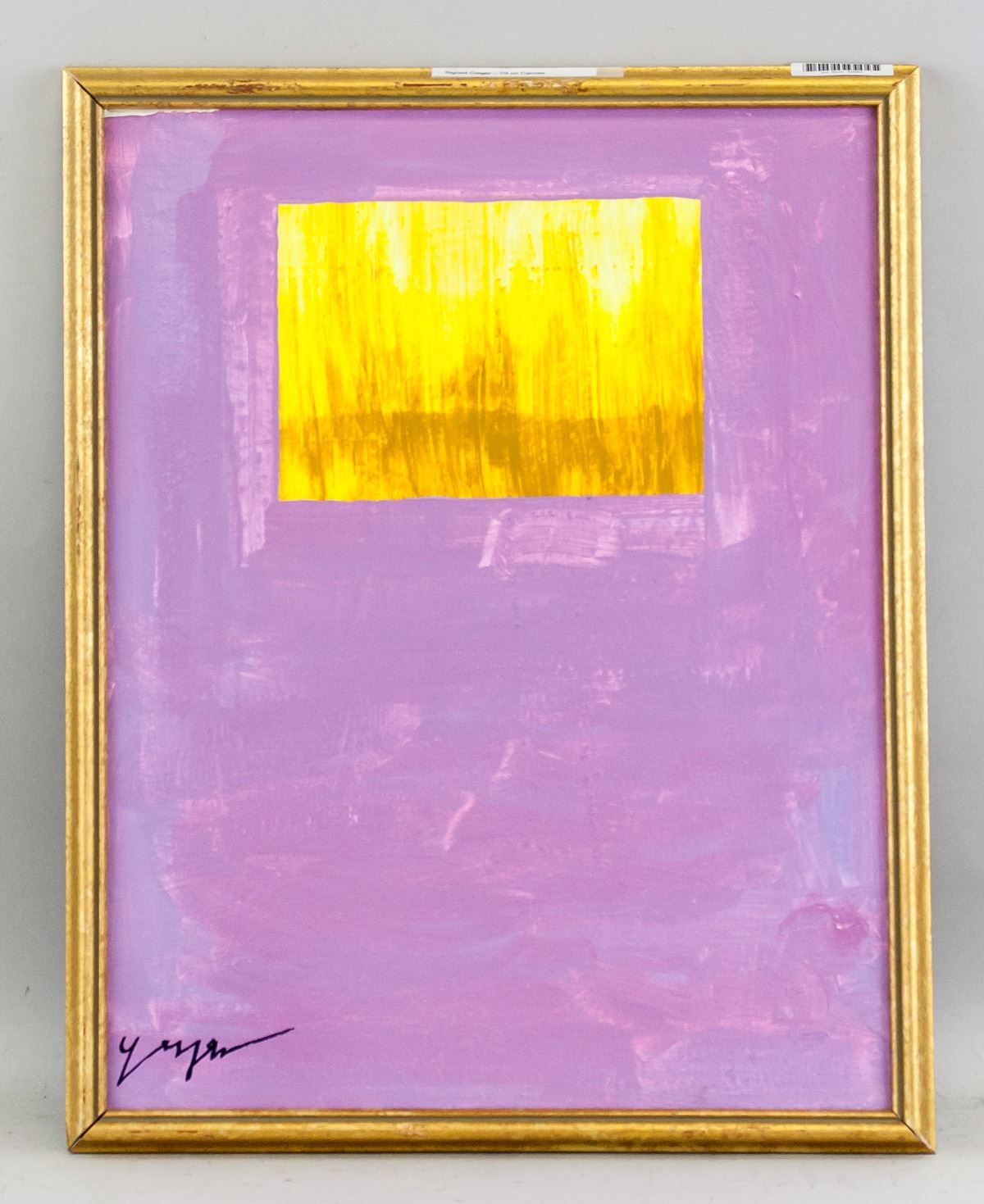 Oil on canvas, stretched and framed. Featuring an abstract expressionist composition. Signed illegibly on the lower left corner. Attributed to Rupprecht Geiger (1908-2009, German). 43 x 34 cm (17.0 x 13.4 inches). PROVENANCE: Southern Ontario estate
