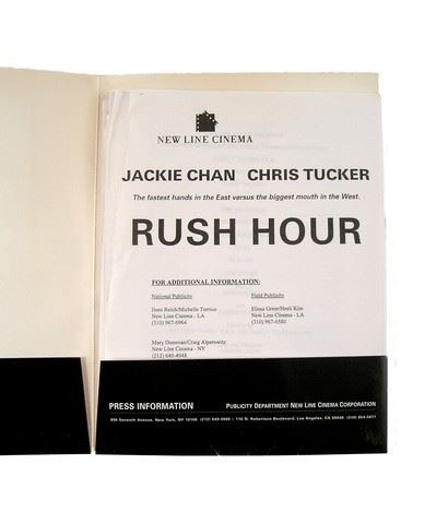 From the classic and loved feature film Rush Hour (1998) is this production used press folder. (approx. 12" x 9")