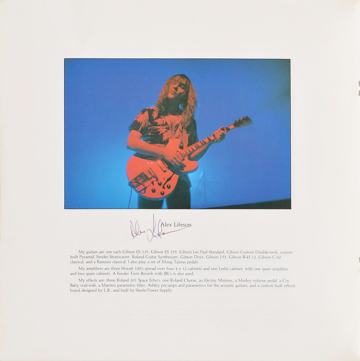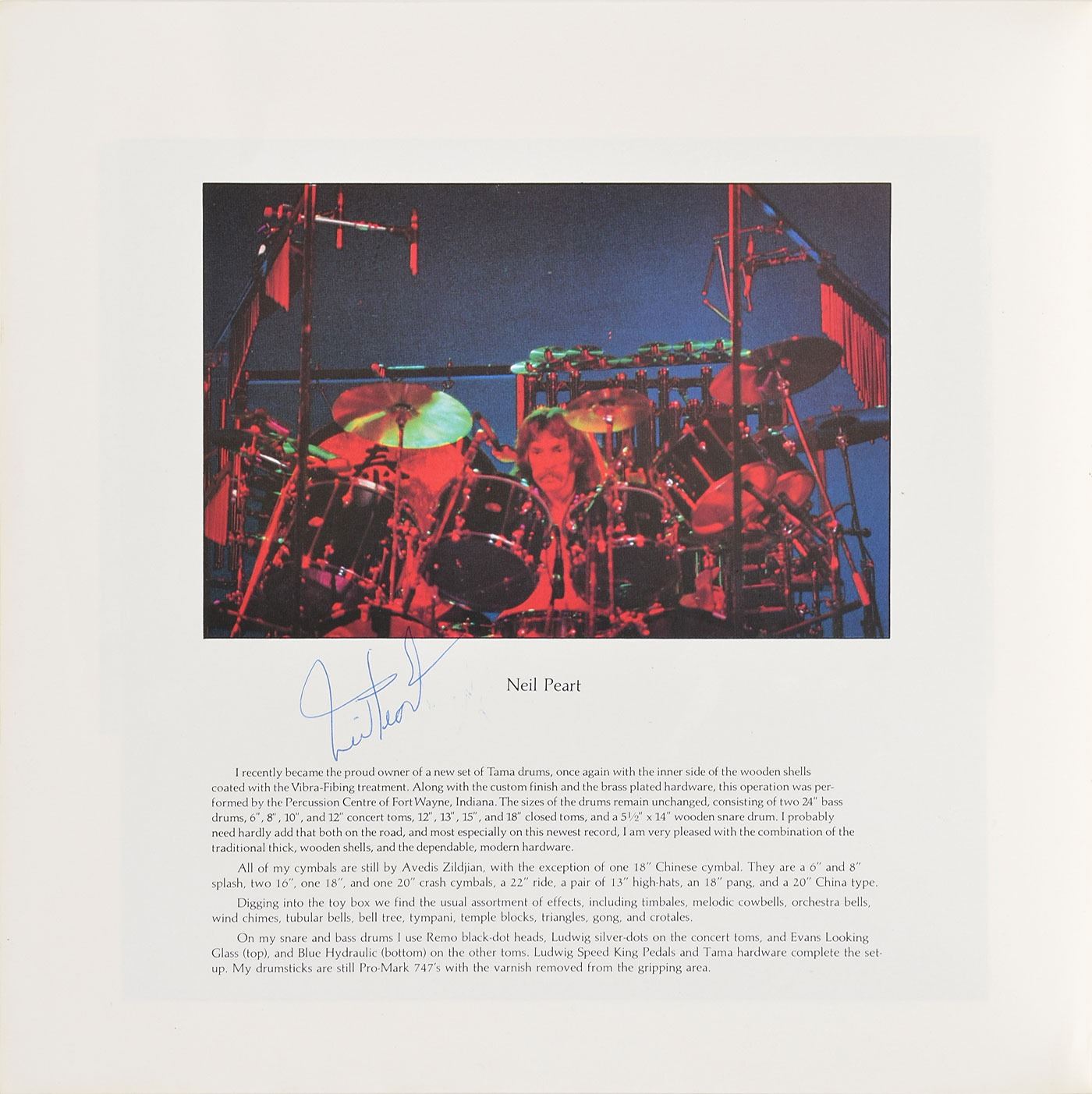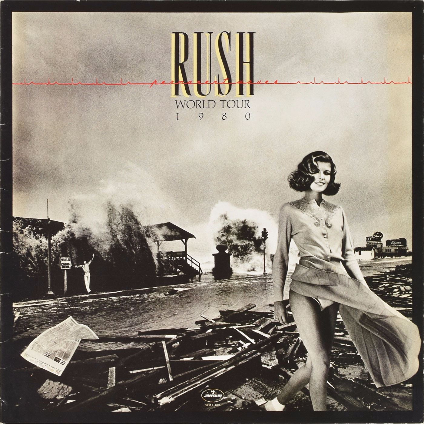 Program for Rush's 1980 Permanent Waves World Tour, 12 x 12, sixteen pages, signed inside on their respective bio pages in ink or ballpoint by Geddy Lee, Neil Peart, and Alex Lifeson. In fine condition.