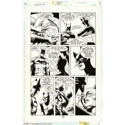 Russ Heath - Original Art for Batman: Legends of the Dark Knight #48, Complete 25-page Story, "Heat Part 3" (DC, 1993). During the worst heat wave of the century, Gotham City is beset by a series of brutal attacks by a costumed criminal with razor-sharp claws attached to his gloves. As Batman tries to track the sadistic maniac, he forms an uneasy alliance with Catwoman as the violence escalates. At turns sexy and horrifically violent, "Heat" was a solid entry into the non-continuity anthology series Legends of the Dark Knight, but what made the story truly special was the exceptional artwork by the legendary Russ Heath. This lot includes the artwork to the entire issue, including page after page of incredible shots of Batman, the Batcave, a very sexy Catwoman, and virtually non-stop action. There's plenty of "good girl" art as well, always a welcome addition to any Russ Heath story. Page one includes a vellum overlay with an alternate typeface for the "Heat" title, and the pages are very clean with virtually no white-out. 25 pages, 11" x 17" on standard DC stock. Important notice: We expect to be auctioning lots at the rate of 200-250 per hour. Sometimes eBay Premier live bid software cannot keep up with that pace, so we strongly recommend that you place a realistic proxy bid now as insurance to avoid disappointment. Also please note that all Heritage/CAA lots purchased through eBay Premier carry a 20% Buyer's Premium. Please make sure you read the Terms and Conditions.