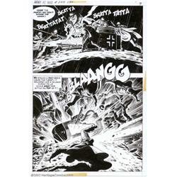 Russ Heath - Original Art for Our Army at War #263, Complete 12-page Story, "The Cage" (DC Comics, 1973). Even a German POW camp can't keep Rock and the boys of Easy Company down! From the legendary team of Bob Kanigher and Russ Heath, this hard-hitting story is masterfully rendered and evocatively drawn. Measuring approximately 15.75" x 10.5", each page has an image area of approximately 15" x 10", all pages are in excellent condition. This is a fabulous, almost cinematic, example of Russ Heath's work, and will make a worthy addition to any collection. Important notice: We expect to be auctioning lots at the rate of 200-250 per hour. Sometimes eBay Premier live bid software cannot keep up with that pace, so we strongly recommend that you place a realistic proxy bid now as insurance to avoid disappointment. Also please note that all Heritage/CAA lots purchased through eBay Premier carry a 20% Buyer's Premium. Please make sure you read the Terms and Conditions.