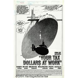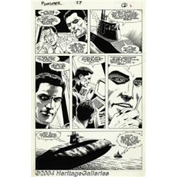 Russ Heath - Original Art for for Punisher Vol. 2, #27, Cover and Complete 21-page Story "Your Tax Dollars at Work" (Marvel, 1990). Russ Heath's art illustrates Mike Baron's story for the sea action tale, "Your Tax Dollars at Work," a saga loaded with murder and mayhem. This story features many Russ Heath hallmarks: beautiful women, detailed submarine sets, and combat action, courtesy of the escapades of The Punisher, Frank Castle. The art showcases Heath's legendary talent at cinematic staging and detailed inking. The impressive up-angle of the enemy sub on page one is a stat from the previous issue's last-page cliff-hanger, as is the cityscape on panel 3 of the last page, but the rest of the issue is 100% original art. As an added enticement, this lot also includes the cover artwork. The overall art size is 11" x 17" with an image area of 10" x 15". A fantastic collection of pages. Important notice: Heritage usually auctions material at the rate of 200-250 lots per hour. On some occasions eBay Live bid software or the Internet may not be able to keep up with the pace of the auction. We recommend placing a realistic absentee bid now as insurance to avoid disappointment. Occasionally the auctioneer may eliminate or reject an eBay Live bid, and the auctioneer may also reopen a lot after the close of the eBay live bidding (usually because we missed an audience bid), and may reject your bid even if it shows you as the winning bidder. By bidding via eBay Live, you agree that Heritage may award the lot to another bidder at its sole discretion under the circumstances described above or any other reasonable circumstances. Since eBay bids are not shown to us until we open the lot on the floor, we treat those bids just like floor bids. In most cases the floor responds before the eBay bid is presented to us, due to Internet lag time, so for consistency we have made it a policy that floor bids are always considered first over tie eBay live bids. Also please note that all Heritage lots purchased through eBay Live carry a 20% Buyer's Premium. Please make sure you read the Terms and Conditions before you bid.