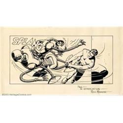 Russ Manning - Original Illustration of Magnus Robot Fighter (Gold Key, 1960s). Manning's most famous character, Magnus, comes to life in this action-laden illustration. In this dynamic piece, Magnus does what he does best, kicks some robot butt. An image that would make any Gold Key collector proud, a similar illustration in 1996 sold for $1,500. In excellent condition, it measures 13" x 6". Important notice: We expect to be auctioning lots at the rate of 200-250 per hour. Sometimes eBay Premier live bid software cannot keep up with that pace, so we strongly recommend that you place a realistic proxy bid now as insurance to avoid disappointment. Also please note that all Heritage/CAA lots purchased through eBay Premier carry a 20% Buyer's Premium.