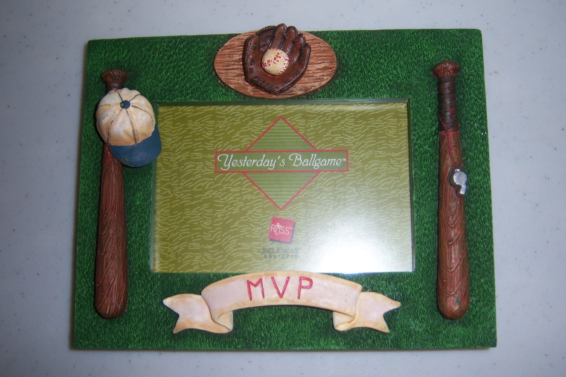 Russ Yesterday's Ballgame Sculptstone Picture Frame - MVP theme holds a 3 1/2" x 5" photo