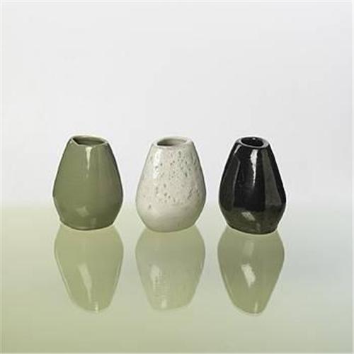 Russel Wright Corsage vases, set of eleven Bauer USA, c. 1945 glazed stoneware 4"w x 3.5"d x 4.75"h Impressed signature and manufacturer's marks. Several pieces show model number and date.