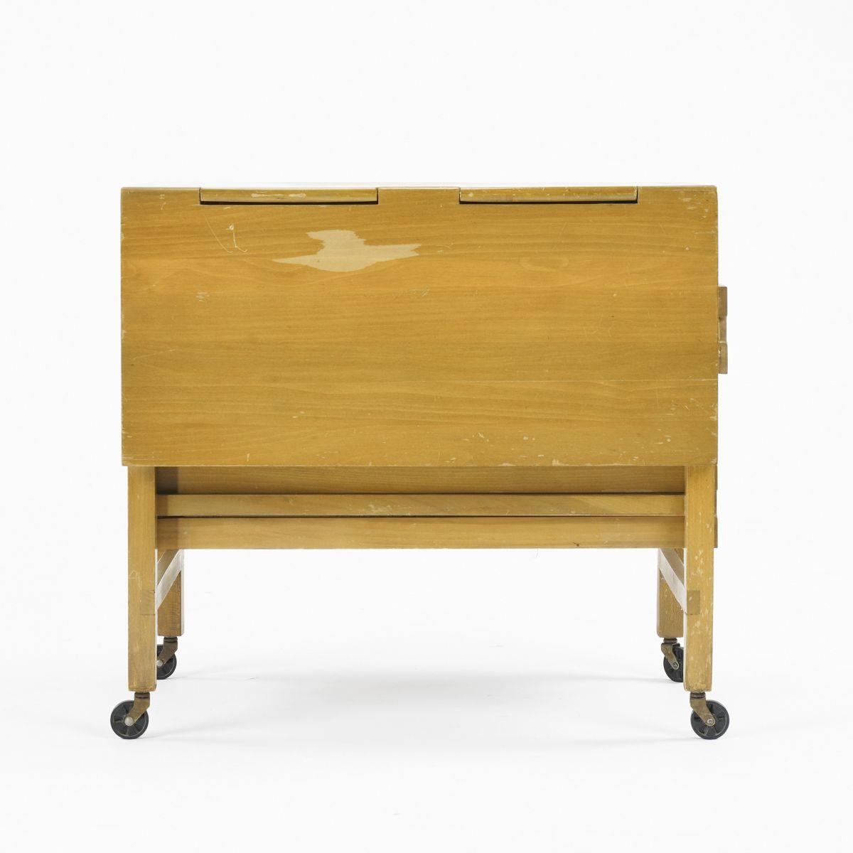 Heavy wear to finish on drop down sides and top. Minor areas of water damage throughout. Older dents and gouges from age and use.