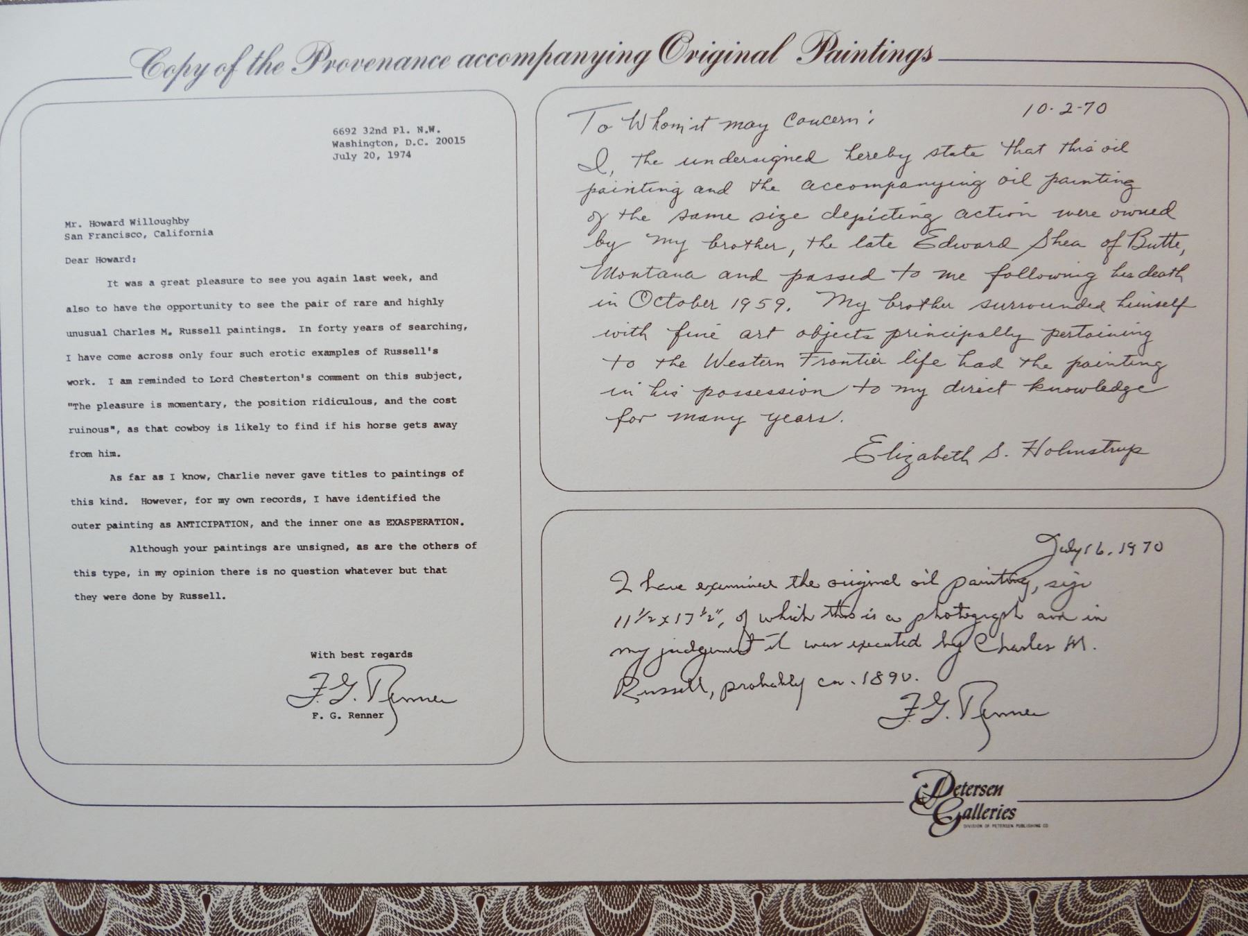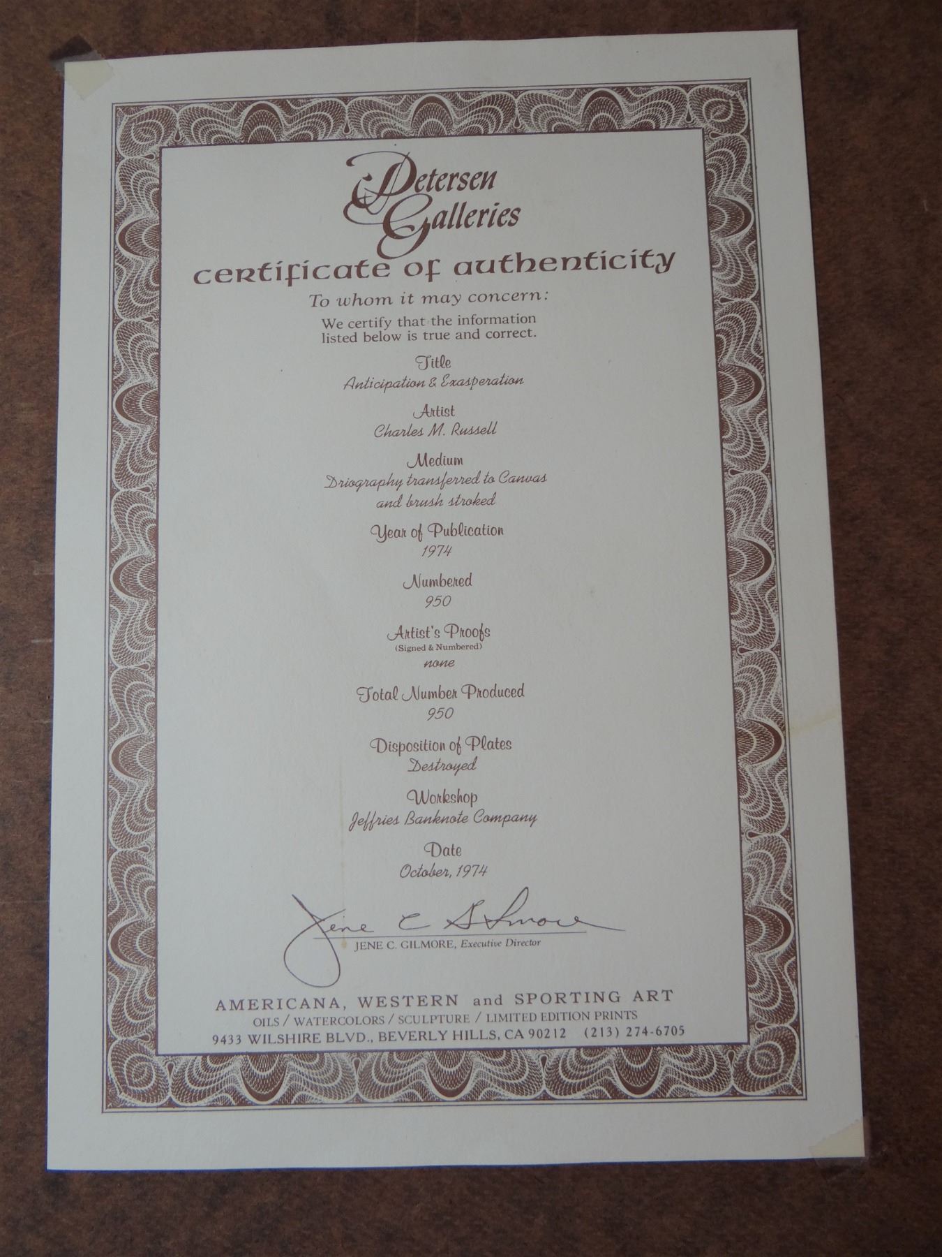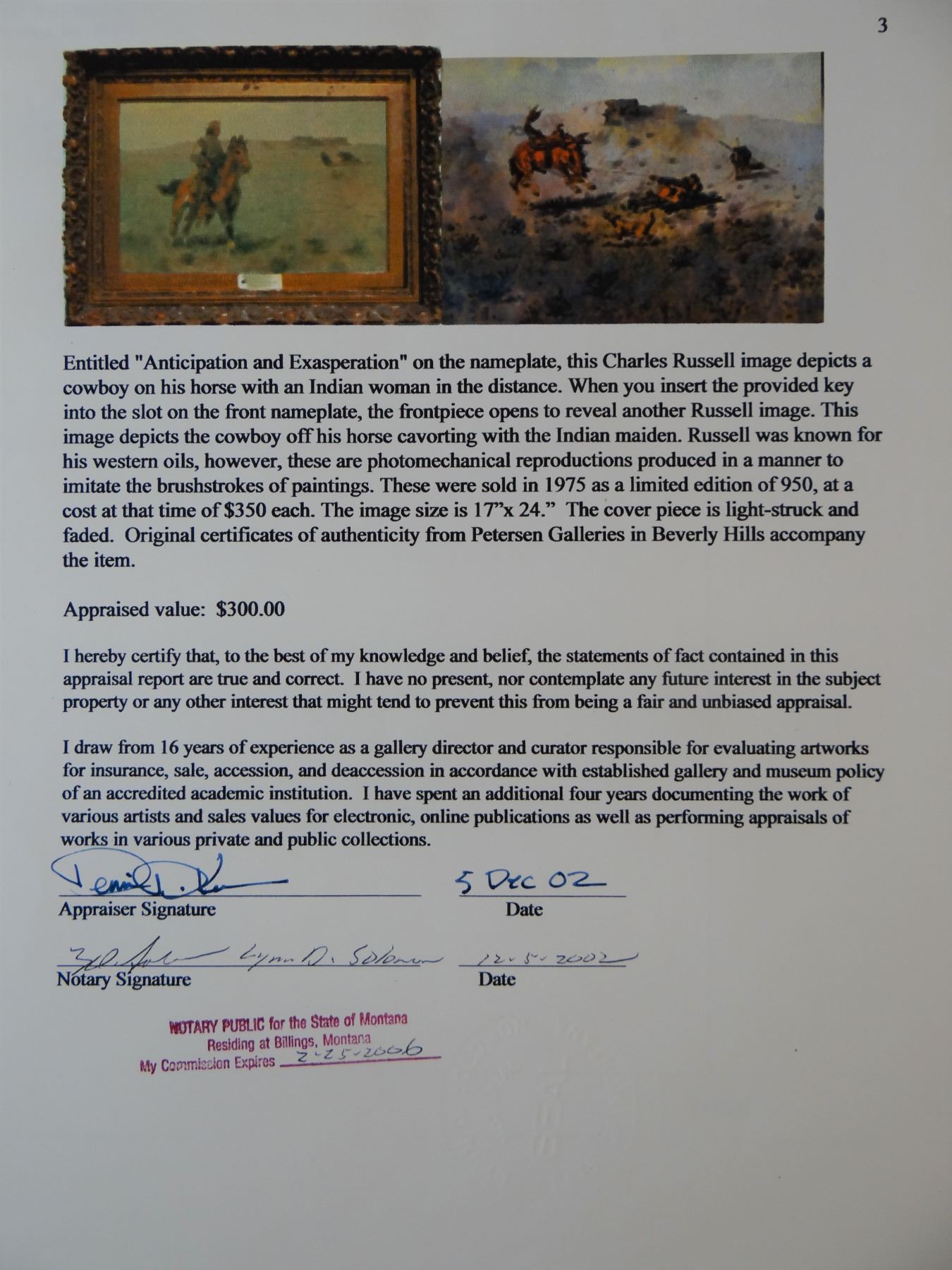 Russell, C. M., framed prints, two images, Anticipation & Exasperation, 11" x 17", edition of 950