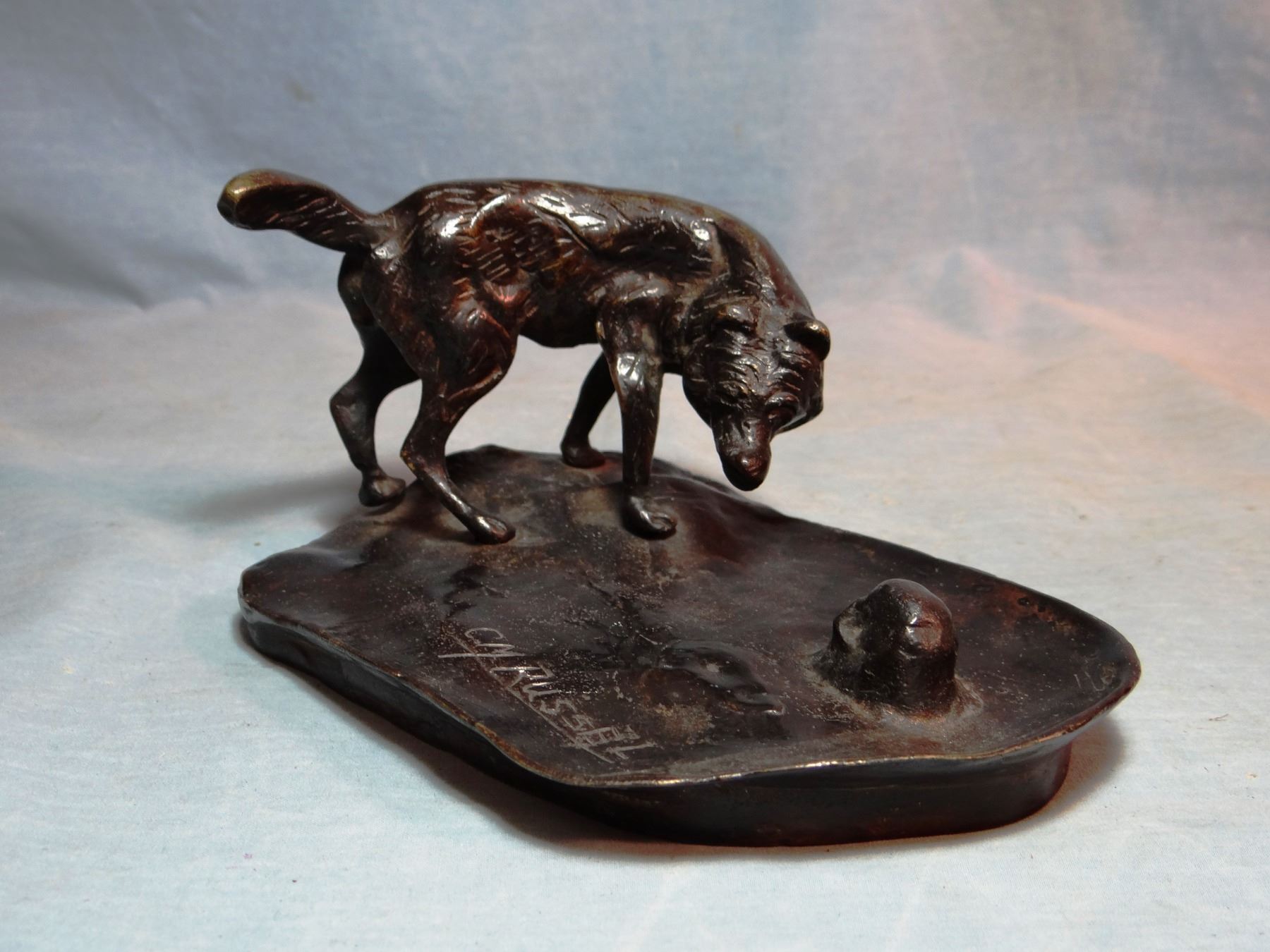 Russell, C. M. recast bronze, Wolf ash tray, 4"X 6 1/2"