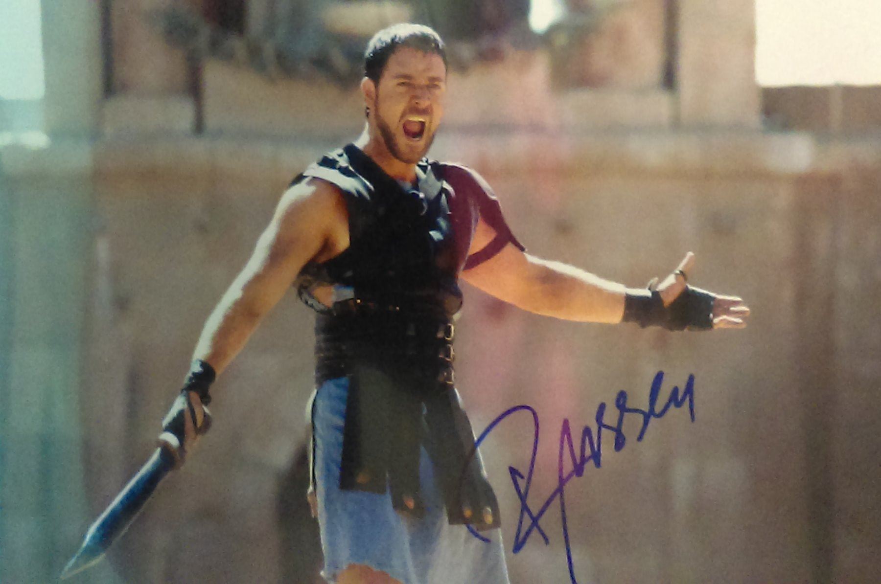 Color 16x20 photo from the film Gladiator signed by Russell Crowe. All items come with a certificate of authenticity good for the life of the piece.