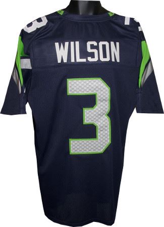 Russell Wilson was selected by the Seahawks with the 12th pick in the third round (75th overall) of the 2012 NFL Draft. Wilson signed a four-year, $2.99 million contract with the Seattle Seahawks on May 7, 2012 and was named the team's starting quarterback on August 26, 2012. In 2012, Wilson led the Seahawks to the divisional round of the NFL playoffs and was voted the Pepsi NFL Rookie of the Year. In the 2013 season, Wilson led the Seahawks to their first Super Bowl win in the team's 38-year history. This is a Russell Wilson Seattle Seahawks unsigned Navy unlicensed custom-prostyle jersey with twill stitched nameplate and numbers. perfect for autograph or to wear! Size XL