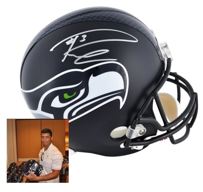 Russell Wilson Signed Seattle Seahawks Authentic Full Size Proline NFL Helmet. Comes with a Photo from the Signing and a Certificate of Authenticity with matching #'d holograms and online verification from VA Auctions. This is a stock photograph which means that you will receive an item of the same or higher quality and excellence.