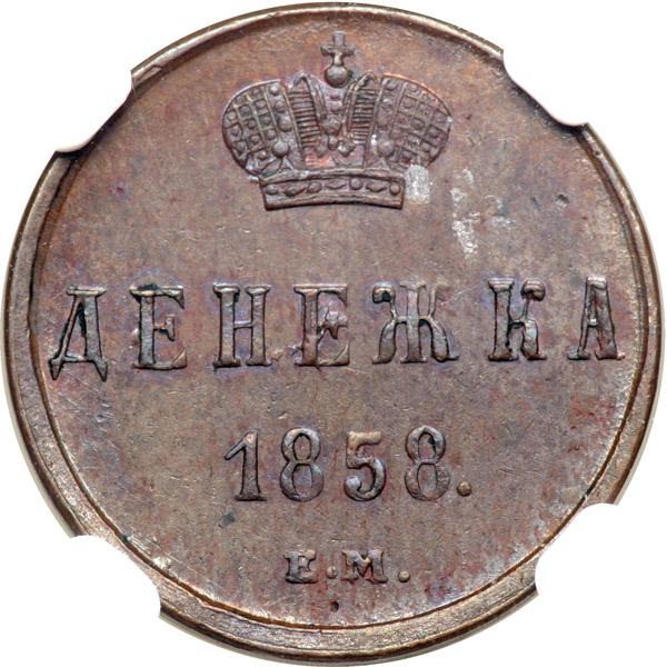 Russia. ½ Kopek, 1858-EM. Br-45; Y-2.1. Alexander II. NGC graded MS-62 Brown.