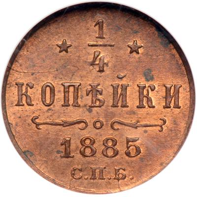 Russia. ¼ Kopek, 1885-SPB. B-5; Bitkin 1st ed-206. Alexander II. NGC graded MS-64 Red & Brown.