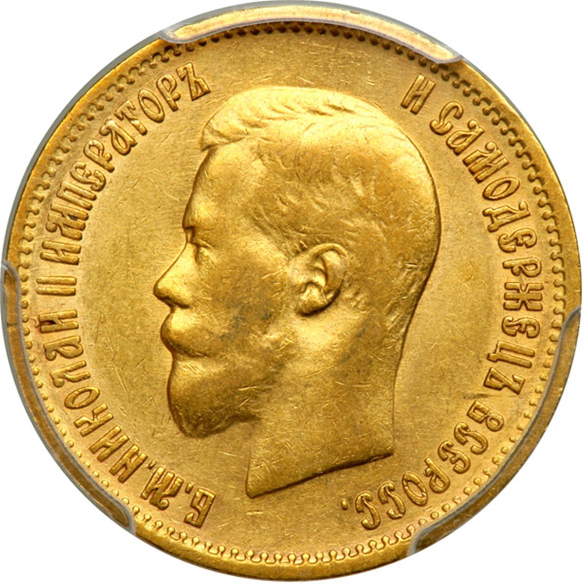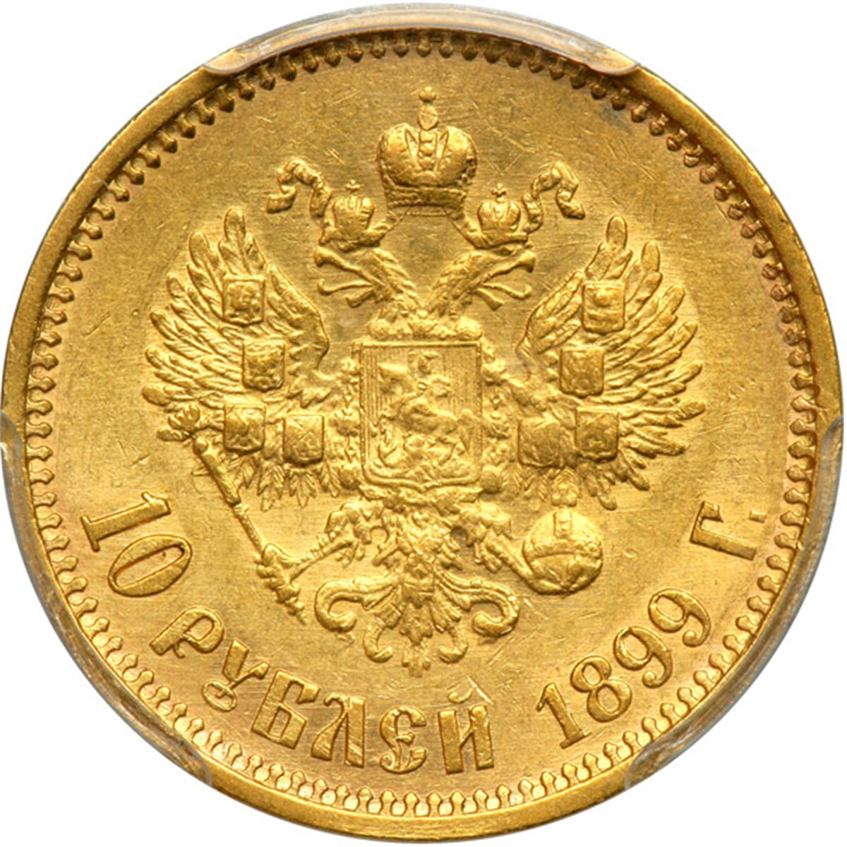 Russia. 10 Roubles, 1899-. Fr-179; KM-Y64. Weight 0.2489 ounce. Nicholas II. PCGS graded AU-53.